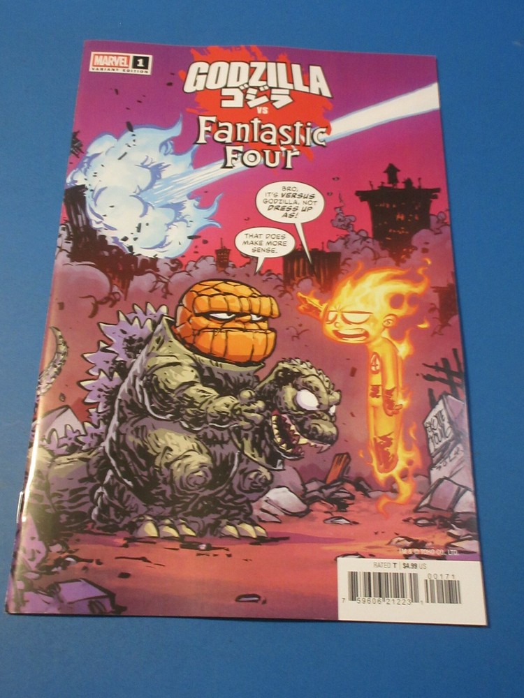 This auction is for Godzilla vs Fantastic Four #1 variant in NM c ondition. This week we are selling a nice collection of DC Batman and Marvel comics plus CGC books and many other 1st appearance key issues. You are sure to find something you are looking for this week. Bonus Offer! Win 2 or more comics (10 dollar minimum) and get a bonus comics and an upgraded bonus if you win 10 auctions. Our Shipping rates are: USA: 5 dollars flat rate for raw comics with no limit. Canada: 16 Dollars for the 1st comic and 1.50 each after that. International: 18 dollars for the 1st comic and 1.50 each after that. CGC books are 11.99 for the 1st and 5 each after that in the USA, 24 bucks and 12 combined for Canada and 28 bucks and 14 combined for international. Feel free to ask questions. I guarantee superfast Domestic shipping! "Christ Crucified" Nuff Said 1 Corinthians 1:23