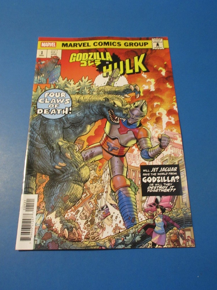 This auction is for Godzilla vs Hulk #1 variant in NM condition. This week we are selling an lot of new raw books plus CGC books and many other 1st appearance key issues. You are sure to find something you are looking for this week. Bonus Offer! Win 2 or more comics(10 dollar minimum) and get a bonus comics and an upgraded bonus if you win 10 auctions. Our Shipping rates are: USA: 5 Dollar flat rate shipping on raw books with no limit. Canada: 16 Dollars for the 1st comic and 1.50 each after that. International: 18 dollars for the 1st comic and 1.50 each after that. CGC books are 11.99 flat rate shipping for up to 20 CGC slabs in the USA , 22 bucks and 10 combined for Canada and 28 bucks and 14 combined for international. Feel free to ask questions. I guarantee superfast Domestic shipping! Christ crucified! 'Nuff said 1 Corinthians 2:1,2