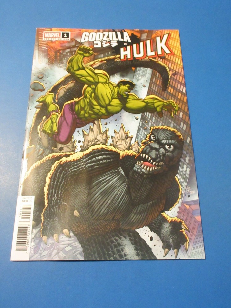 This auction is for Godzilla vs Hulk #1 variant in NM condition. This week we are selling an lot of new raw books plus CGC books and many other 1st appearance key issues. You are sure to find something you are looking for this week. Bonus Offer! Win 2 or more comics(10 dollar minimum) and get a bonus comics and an upgraded bonus if you win 10 auctions. Our Shipping rates are: USA: 5 Dollar flat rate shipping on raw books with no limit. Canada: 16 Dollars for the 1st comic and 1.50 each after that. International: 18 dollars for the 1st comic and 1.50 each after that. CGC books are 11.99 flat rate shipping for up to 20 CGC slabs in the USA , 22 bucks and 10 combined for Canada and 28 bucks and 14 combined for international. Feel free to ask questions. I guarantee superfast Domestic shipping! Christ crucified! 'Nuff said 1 Corinthians 2:1,2