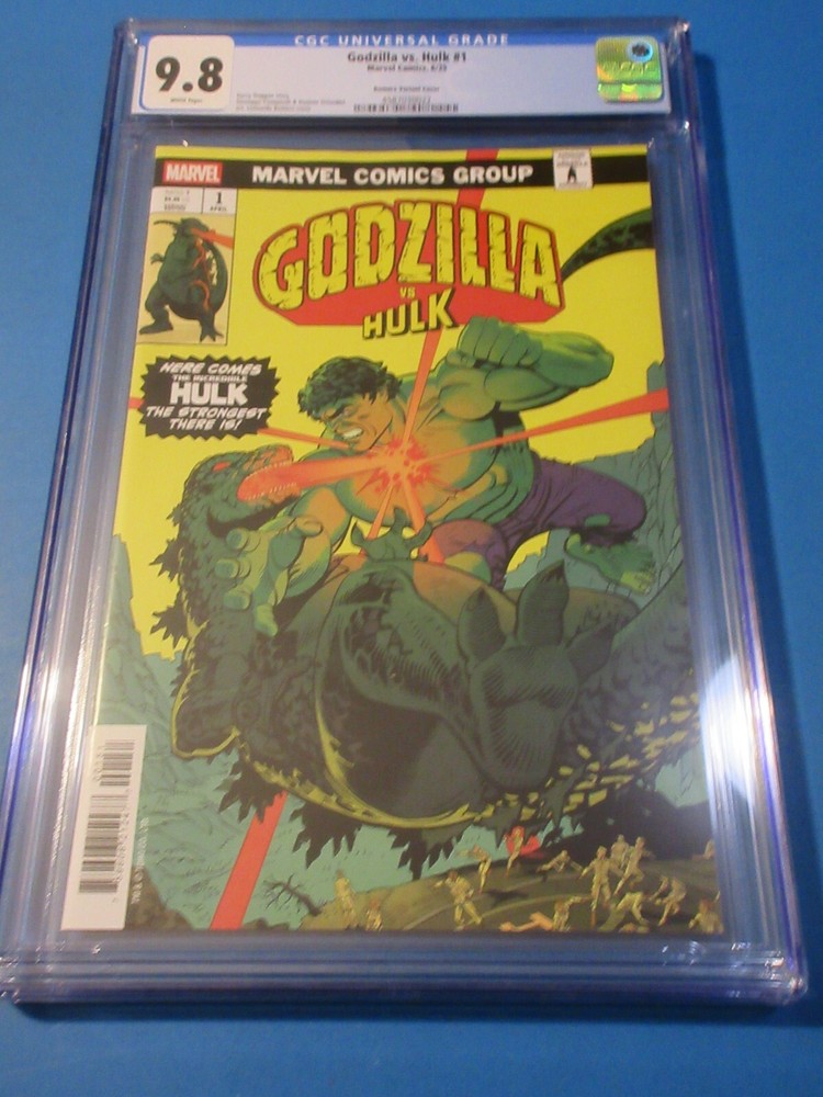 This auction is for Godzilla vs Hulk #1 variant in CGC 9.8 with a brand new case . This week we are selling an incredible collection including Amazing Spider-man , Silver Surfer, Dr. Strange, X-men, Iron Man, Hulk, Fantastic Four, Black Panther, Batman, CGC books and many other 1st appearance key issues. You are sure to find something you are looking for this week. Bonus Offer! I will add a bonus comic book for every 10 auctions you pay for on the same invoice this week. Our Shipping rates are: USA: 5 dollars for single comics with no limit, multiple comic lots have a charge and additional combined lots are half price. Canada: 16 Dollars for the 1st comic and 1.50 each after that. International: 18 dollars for the 1st comic and 1.50 each after that. CGC books are 11.99 flat rate for up to 20 slabs in the USA, 22 bucks and 10 combined for Canada and 28 bucks and 14 combined for international. Feel free to ask questions. I guarantee superfast Domestic shipping! ...to open their eyes...that they may receive forgiveness of sins and a place among those who are sanctified by faith in me. Acts 26:18
