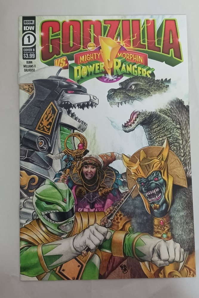 *Up for sale is a copy of Godzilla vs. Mighty Morphin Power Ranger #1 Cover B. It is in NM condition.* We ship securely. We use bags, boards and cardboard shipping mailers. Combined Shipping on Comic Books to US Customers: ? 1 Comic = $5.50 USPS Ground Advantage ? 2 to 3 Comics = $7.50 USPS Ground Advantage ? 4 to 12 Comics = $9.00 Priority Legal Flat Rate Envelope ? 13 to 40 Comics = $15.00 Priority Medium Flat Rate Box If you would like combined shipping just click on "request total" at check out and we will send you an invoice with the correct shipping. Please allow 1-3 business days for handling time. Mister Jay's Comics Toys and Games