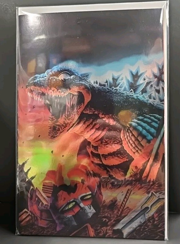 Get ready to morph into action with this exciting Godzilla vs Mighty Morphin Power Rangers #1 comic book. Written by Cullen Bunn, this single issue features a variant cover with Poncho and is a must-have for fans of US Comics and the Power Rangers universe. The comic book is published by IDW Publishing and is set to be released in 2024, making it a great addition to any Modern Age (1992-Now) comics collection. This stashhhloot is perfect for any comic book enthusiast looking for a unique and rare item to add to their collection. The Godzilla vs Mighty Morphin Power Rangers #1 Foil Poncho Variant Stashhhloot is a great way to show off your love for the Power Rangers and Godzilla characters. Don't miss out on the chance to own this amazing comic book.