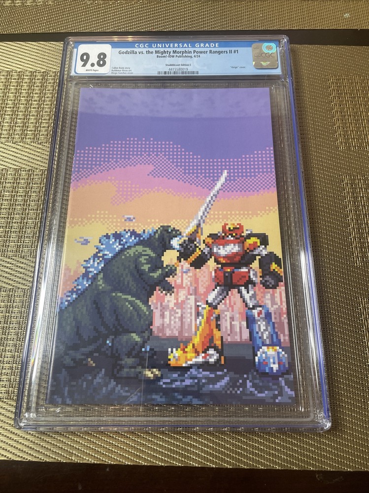 For fans of both Godzilla and the Power Rangers, this comic book is a must-have. Written by Baldar Rivas and Cullen Bunn, Godzilla vs Mighty Morphin Power Rangers #1 features the iconic characters from both universes. The cover art by Diega Sanches is a Virgin Variant, making it a unique addition to any collection. This single issue comic book is graded 9.8 Near Mint/Mint by Certified Guaranty Company (CGC), ensuring its quality. Published by IDW Publishing in 2024, this modern age (1992-now) comic book is part of the Ranger series title. Whether you're a collector or a fan of the characters, this comic book is a great addition to your collection.