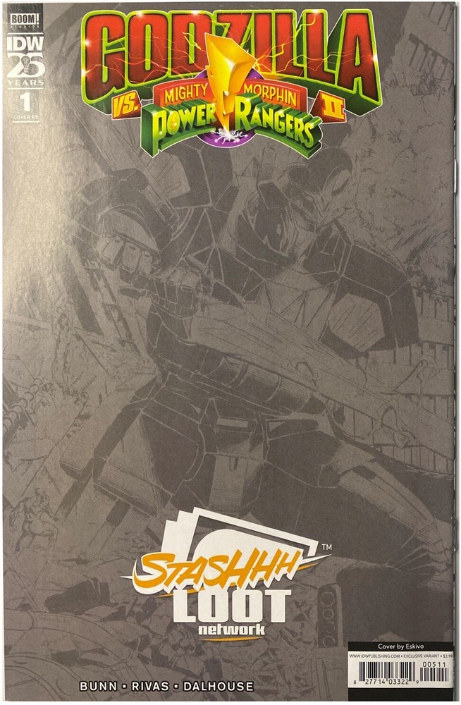 Get ready to battle with Godzilla vs. Mighty Morphin Power Rangers #2 Eskivo Black & White Virgin Variant! This single issue comic book features the iconic characters of Godzilla and the Mighty Morphin Power Rangers in a thrilling black and white design. Written by Cullen Bunn and published by IDW Publishing, this comic book is a must-have for fans of superheroes, action, and science fiction. The issue number 2 of the series comes in a single unit format and is not signed by the artist. The comic book is set in the modern age era (1992-Now) and is perfect for collectors and enthusiasts alike. Add this variant cover to your collection and experience the excitement of the battle between Godzilla and the Mighty Morphin Power Rangers! (Comes bagged and boarded)