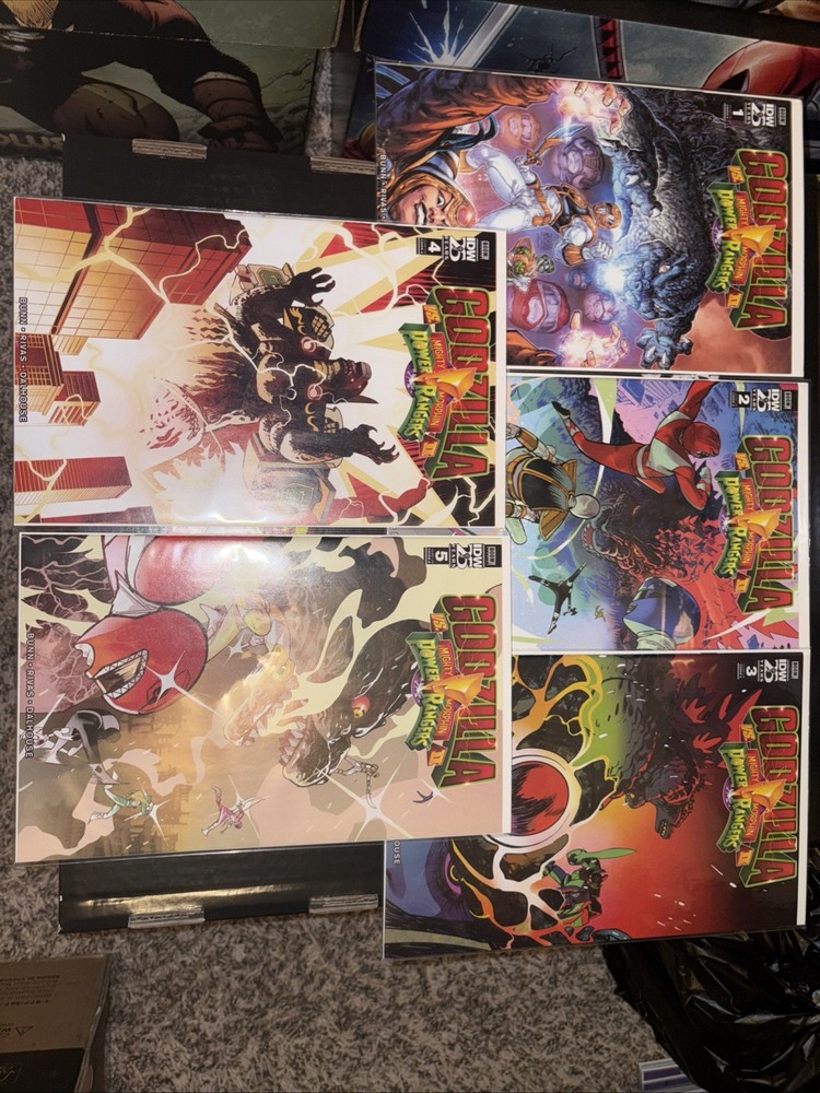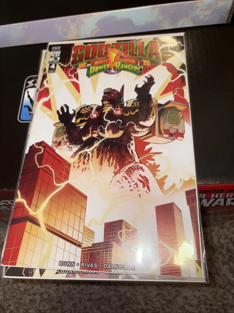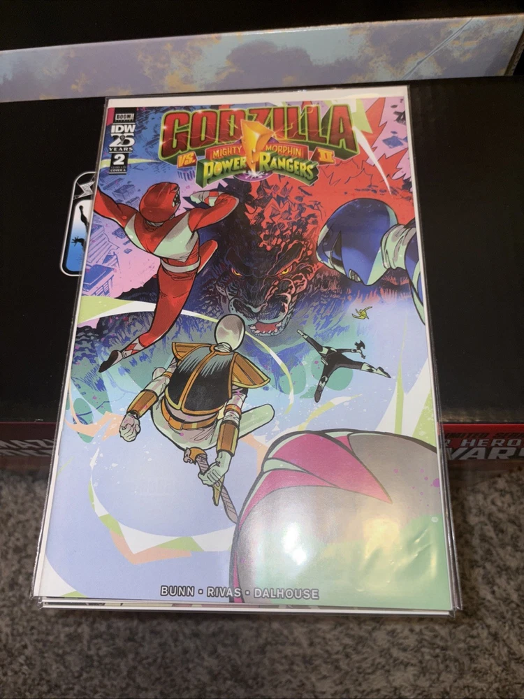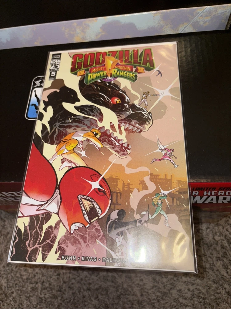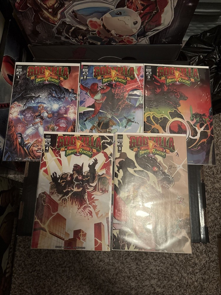 The product is a complete series of comic books titled "Godzilla vs. Mighty Morphin Power Rangers II" #1-5, featuring artwork by Cullen Bunn and published by IDW Publishing. The comics take place in the Power Rangers universe and follow an adventure genre with elements of science fiction. The series, aimed at a general audience, is in English and was published in 2024, making it part of the Modern Age era of US Comics. The first issue of the series is available, providing fans with an exciting addition to their collection.