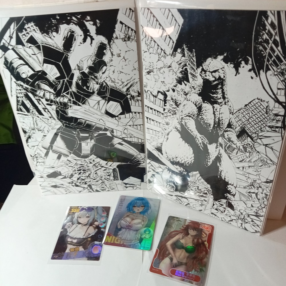 🔥 Godzilla vs. Mighty Morphin Power Rangers II #1 – Connecting Virgin Variant Set + 3 Goddess Story Holo Cards 🔥 ✨ Exclusive Wraparound Variants + Anime Waifu Holos ✨ This listing features the Godzilla vs. Mighty Morphin Power Rangers II #1 Connecting Virgin Variant Set , both wraparound B&W Virgin Variants by cover artist Gabriel Eskivo Santos (Stashhhloot Exclusive) . These connecting covers align to create a stunning full image of Godzilla and the Power Rangers in battle. Also included are three Goddess Story TCG Anime Holo Cards , adding crossover appeal for both comic collectors and anime TCG enthusiasts. All items are NM+ condition or better . 📌 Checklist – Items Included: Comics (NM+): 📖 Godzilla vs. Mighty Morphin Power Rangers II #1 – Gabriel Eskivo Santos – Stashhhloot Exclusive – B&W Virgin Wraparound Variant A 📖 Godzilla vs. Mighty Morphin Power Rangers II #1 – Gabriel Eskivo Santos – Stashhhloot Exclusive – B&W Virgin Wraparound Variant B Goddess Story Holo Cards (NM+): 🎴 Absolute Field – Card #: SSR-010 – SSR Holo 🎴 Rias Gremory – Card #: SSR-019 – SSR Holo 🎴 Silver Wolf – Card #: SSR-030 – SSR Holo 💎 Why Collectors Want This Lot: Connecting Virgin Variant Covers – exclusive wraparound set by Gabriel Eskivo Santos Godzilla + Power Rangers Crossover – two iconic franchises collide Stashhhloot Exclusives – hard-to-find connecting cover set 3 Bonus Goddess Story Anime Holos – crossover appeal for waifu & TCG fans NM+ Condition – all items ship protected for collectors ✅ 100% Positive Feedback Seller – trusted & reliable 🚚 FREE SHIPPING – ships fast & secure 🛒 Visit my store: WildFyre Collectibles for more exclusive comics, CGC slabs, and Goddess Story holo cards