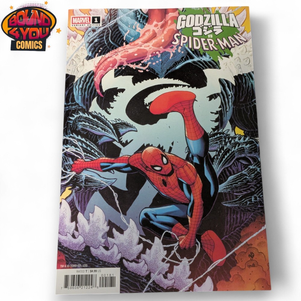 Godzilla vs. Spider-Man #1 - Nick Bradshaw - Venomized Godzilla Variant (2025) I tem Description ROUND THREE: VS. THE AMAZING SPIDER-MAN! Fresh from the original SECRET WARS, PETER PARKER A.K.A. THE AMAZING SPIDER-MAN returns to Earth with a spiffy new (alien) costume without a care in the world except for a complicated love triangle with MJ and Black Catand unbelievable pressure at the Daily Bugle rent bills super-villains oh, and GODZILLA IS IN NEW YORK CITY with his atomic breath aimed squarely at the wall-crawler! Don't miss the two most popular characters in pop culture history absolutely going at it in this kaiju-sized slugfest for the ages! ROUND THREE IN A SERIES OF SIX ONE-SHOT THROWDOWNS! ONE-SHOT Grading We take pride in offering high-quality comic books, and each one you purchase from us will fall within the 9.2 to 9.8 range, unless otherwise stated. While we strive for accurate and consistent grading, please keep in mind that it can be a bit subjective. This is why we don't advertise specific grades. We're always happy to answer any questions you might have about a specific book's condition or provide additional photos to help you make an informed decision. Shipping Policy Domestic Shipping (within the United States): We offer a flat shipping rate for all comic books. All comics are carefully bagged and boarded to protect them during transit. We ship using Gemini Comic Mailers to ensure your comics arrive in pristine condition. Shipping for Graphic Novels, Trade Paperbacks, and Other Collectibles: Shipping costs for these items vary based on size, weight, and destination. The exact shipping cost will be calculated and displayed at checkout. Additional Information: We strive to ship all orders within 1-2 business days of receiving payment. You will receive a tracking number once your order has shipped. Please ensure your shipping address is correct to avoid any delays or delivery issues. If you have any questions about our shipping policy, please don't hesitate to contact us. Returns We want you to be completely satisfied with your purchase. If, for any reason, you are not happy with your item, we offer a hassle-free return policy: Eligibility: Returns are accepted within 30 days of the delivery date. Condition: Items must be returned in the same condition as they were received, including all original packaging and accessories. Refund Process: Once the returned item is received and inspected, a full refund will be issued to the original payment method. Please contact us before initiating a return so we can assist you with the process. We strive to provide excellent customer service and ensure a positive buying experience. If you have any questions or concerns about your order, please don't hesitate to reach out to us. About Us Bound 4 You Comics is more than just a comic shop ? it's a community hub where comic book lovers of all ages can gather, connect, and geek out! Whether you're a seasoned collector or just starting your journey, we've got something for everyone. Browse our latest releases, dive into our back issue overflowing with hidden gems, and explore our curated selection of graphic novels and manga. Thank you for your interest!