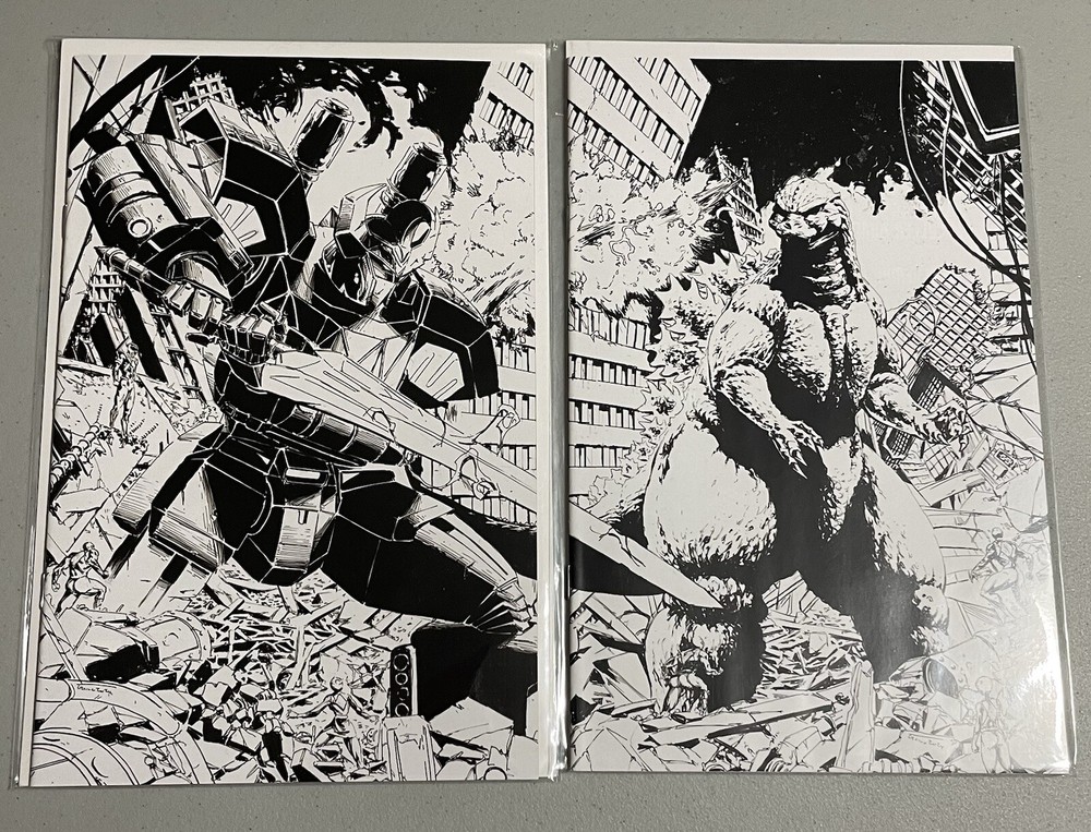Godzilla vs The Mighty Morphin Power Rangers II #1 B&W Connecting Variant...
