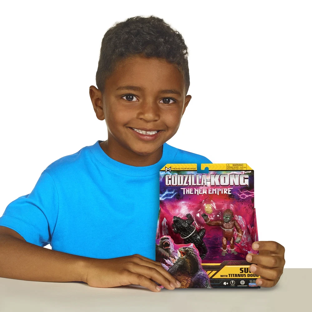 Return to Hollow Earth with Godzilla and Kong in an all-new adventure! When a colossal threat is discovered within our world, Godzilla and Kong must fight to protect their existence—and our own. The Godzilla x Kong 6” Suko with Titanus Doug Figure brings the Son of Kong to your collection, with epic new details that capture his movie look. Set includes Titanus Doug Figure and comes in a unique Godzilla X Kong package! AUTHENTIC: The Godzilla x Kong 6” Suko and Titanus Doug Figures are highly detailed with intricate designs to capture the essence of the Son of Kong and his tiny-yet-mighty ally. From Suko’s boulder accessory to his realistic expression, every detail is made to match the new movie, ensuring an authentic representation of this iconic character BATTLE POSES: Standing 6” tall, the Suko figure is ready to reign over any display or play setting. With multiple points of articulation and his signature handheld boulder, Suko is ready for action, so you can recreate your favorite scenes from his epic battles TINY TITAN: Titanus Doug is ready to steal the show—and some food from Kong! Bring home the action with Hollow Earth’s favorite titan, decorated to match his movie design COLLECT THEM ALL: Complete your monstrous collection with other figures and accessories from the new Godzilla x Kong line. Choose from a wide range of characters, including old allies, dangerous foes, and new challengers to recreate epic battles and awesome new adventures! Build your very own MonsterVerse with Playmates Toys