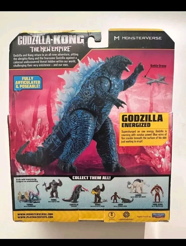 Introducing the Godzilla x Kong: Energized Godzilla Figure with Battle Drone by Playmates Toys. This action figure is a must-have for any fan of the Godzilla franchise. The figure stands at 6 inches tall and is made of high-quality plastic material. With a scale of 1:12, this original and licensed reproduction features the iconic Godzilla character in a battle-ready pose, ready to take on any opponent. The figure is perfect for collectors and fans alike, and is sure to impress with its intricate details and vibrant multicolor design. Don't miss out on the chance to add this amazing piece to your collection. see pictures free shipping. [Tote 122]