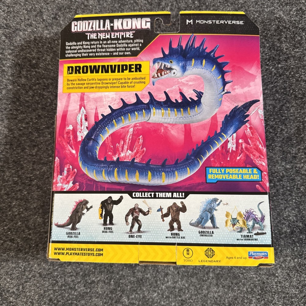 New in package, packaging and figure both in great shape no damage or flaws. Godzilla X Kong Drownviper figure. In hand ready to ship same day Fast free and secure shipping!