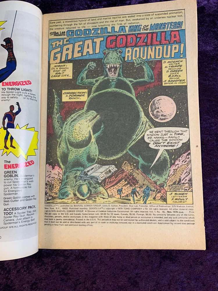 Godzilla/King of The Monsters: Vol. 1, #16 /"The Great Godzilla Roundup " / 1978 This comic was purchased, put in bag with board and then stored upright in a box. Hasn’t been touched since except to take these pictures. Please look at the photos and see the condition. The photos I posted are of the actual item you will receive. I am not a professional grader so please look at the pictures closely and judge for yourself. Don’t like the price? Make me an offer! :-) Kept in a smoke free home Comics will come Bagged, Boarded & Shipped Protected so you get it as seen. Shipping weight may be a bit high due to extra protection. (Storage Box # 9 )