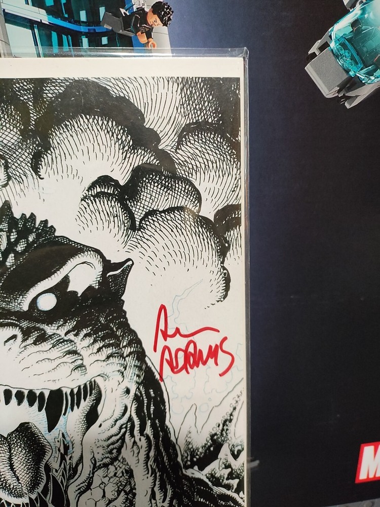 Amazing cover with COA!! This limited edition comic book variant is a must-have for fans of Godzilla and US Comics. Featuring the iconic character Godzilla, this Monsterpiece Theatre #1 is signed by the renowned artist and writer Adams. With its unique Sketch cover, this comic book is a true work of art. Perfect for collectors and enthusiasts alike, this NYCC exclusive is a rare find with only 500 copies available. The comic book is in excellent shape and will make a great addition to any collection. Don't miss out on the opportunity to own this one-of-a-kind piece of memorabilia.