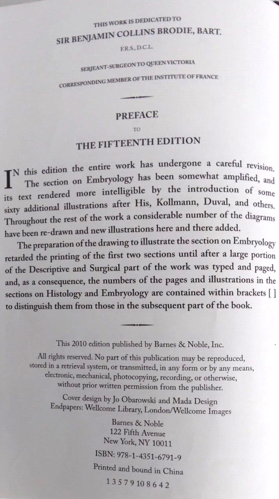 Gray's Anatomy - Henry Gray, F.R,S, Drawings by H.V. Carter,M.D. - Published by Barnes & Noble ISBN 9781435167919 Hardcover Fifteenth Edition Clean No Writing or Markings No Page Folds Tight Binding Cover has Minimal Wear Shrink Wrapped for Protection
