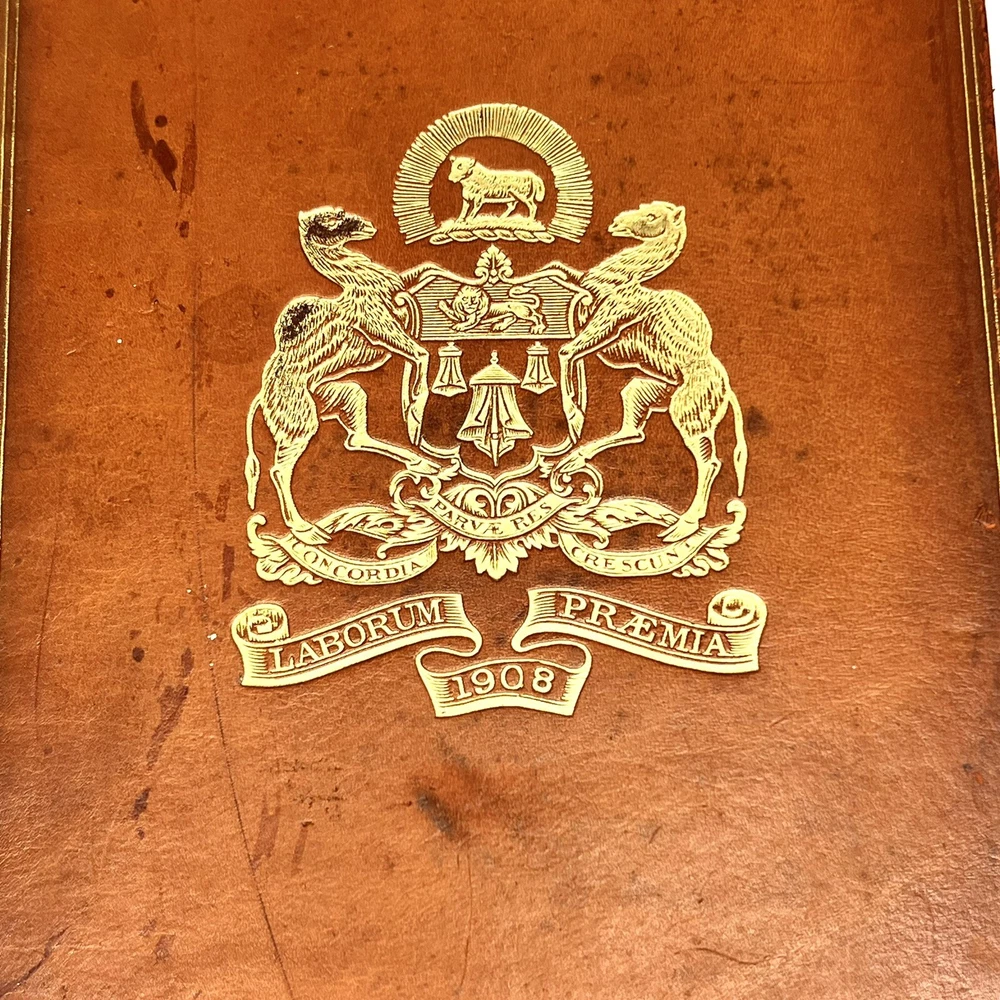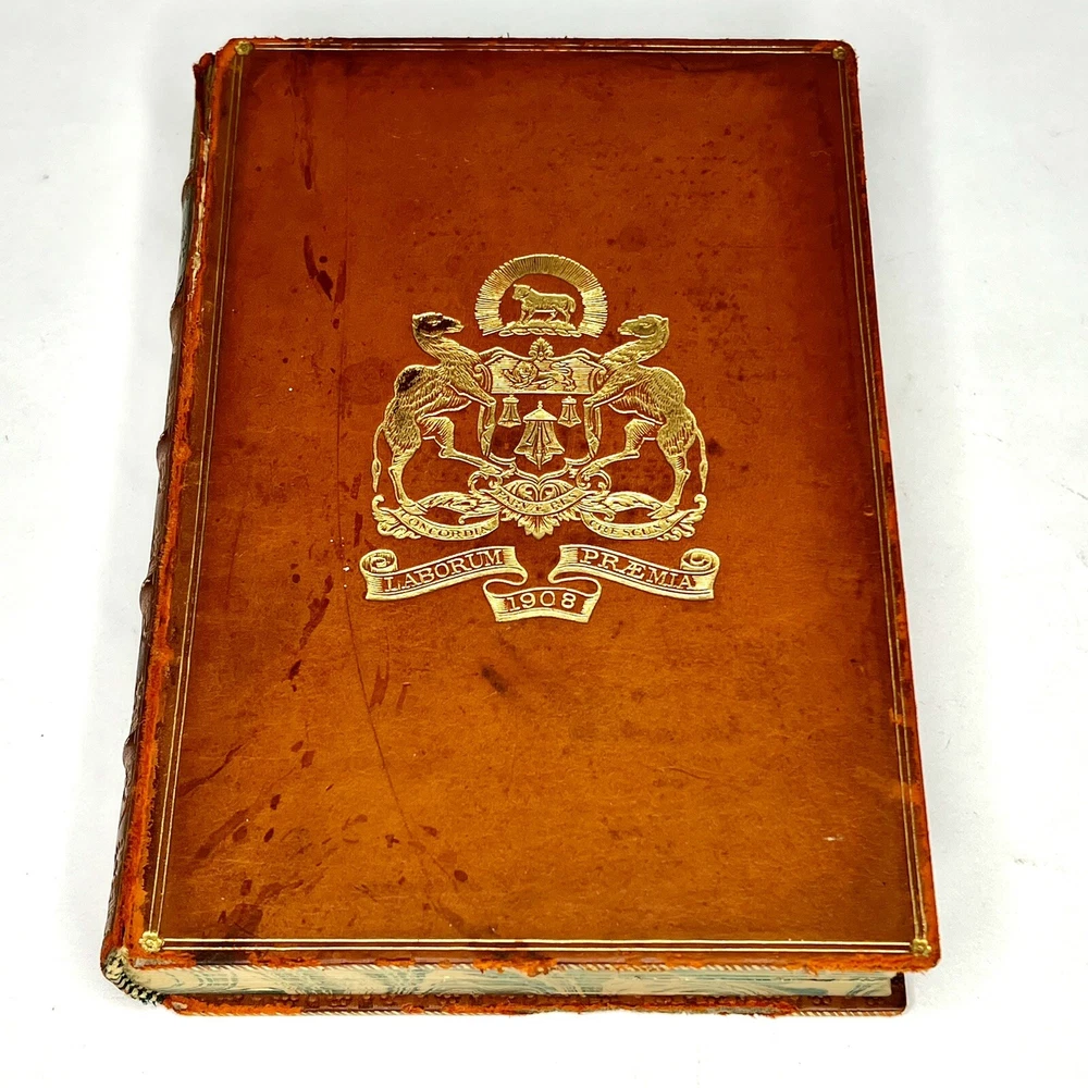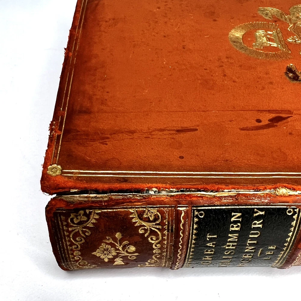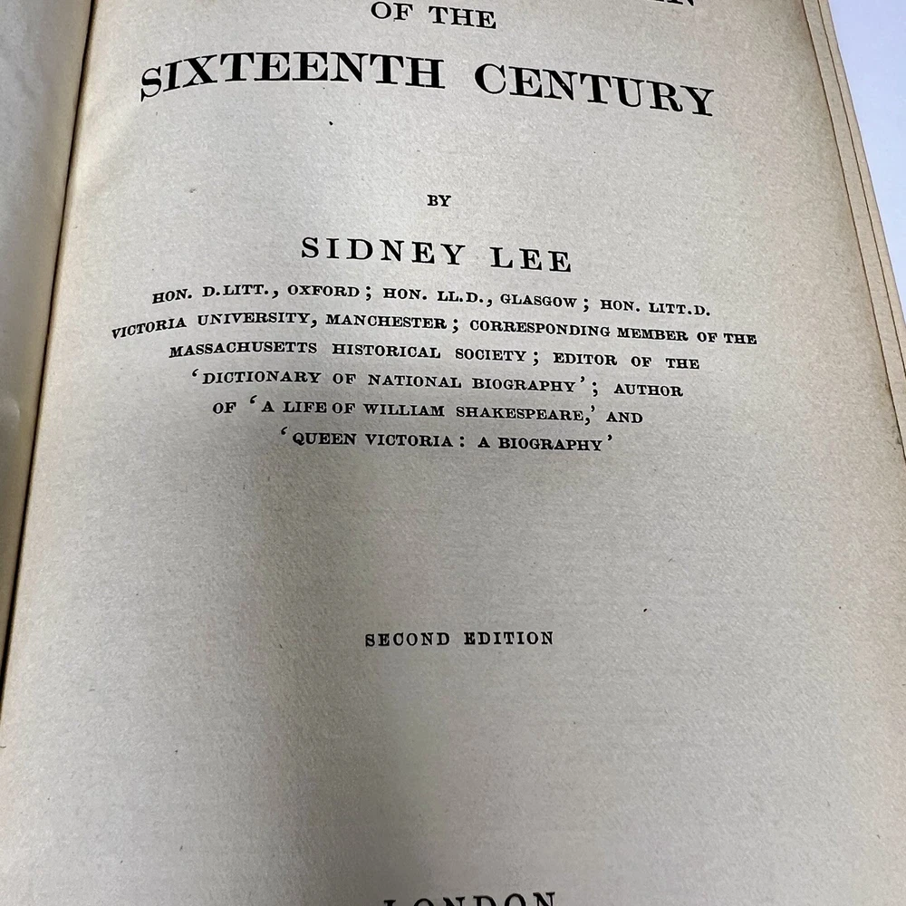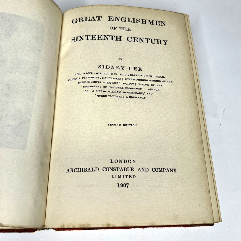 MERCHANT TAYLORS' COMPANY, GREAT ENGLISHMEN OF THE SIXTEENTH CENTURY BY SIDNEY LEE SECOND EDITION LONDON ARCHIBALD CONSTABLE AND COMPANY LIMITED 1907 Leather binding and marbled page edges. Cover and binding has some marks and damage. Pages are all intact. Please examine all photos for exact condition and use them as part of the description. Contact me if you have any questions. Thanks for looking.
