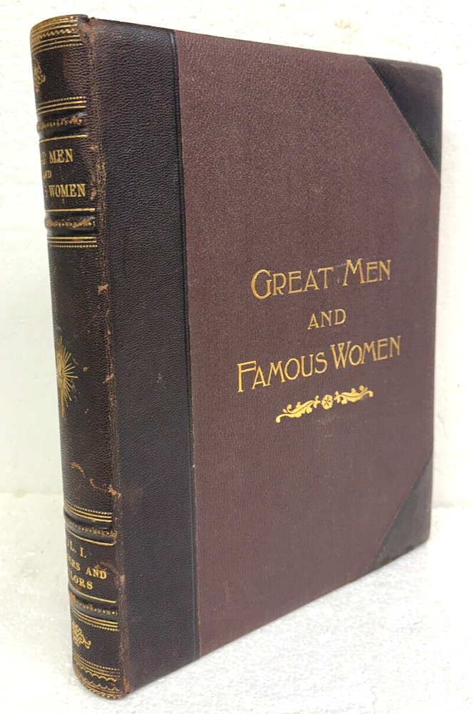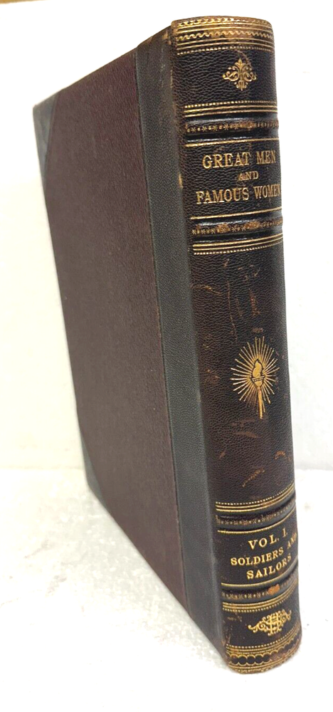 GREAT MEN AND FAMOUS WOMEN A Series of Pen and Pencil Sketches of the Lives of More than 200 of the Most Prominent Personages in History Volume I Soldiers and Sailors edited by Charles F. Horne Published: Selmar Hess, Publisher, New York - 1894, First Edition This hardcover book measures 9 1/2" X 11 3/4" - 408 pages, with B&W text illustrations, plus 17 B&W photogravures, and 39 B&W plates. This volume is one of what appears to be a four-volume set. We believe this set is a First Edition, First Printing of Great Men and Famous Women, dated 1894. In attempting to ascertain a value on Bookfinder we found these books were in the listings mixed with a cheaper and of less quality eight-volume set from the same publisher. Oddly enough we have (had) volumes 1-4 of this set in our inventory. They are also dated 1894, with no mention of the originals. There appears to be NO distinction between the two on Bookfinder. You will notice we designated the lesser quality four volumes as a Later Edition. Apparently at some point the quality four-volume set was broken into eight parts by the publisher. These inferior versions of the originals lack the gilt edged pages, the quality leather spines and corners, fine end papers, and are printed on stock of a lesser quality. We are offering these four quality original volumes not as a set since some people might have one or more in their libraries. We can always sell all four together to an interested party. What is also of note are the slipcases on volumes 2, 3 & 4 which have kept the conditions of these volumes in Near Fine over the years. Volume I is lacking the slipcase, but in light of its condition, it probably had one at some time. The book is half leather bound, with gold inlay on the front and spine, and all the page edges gilted. There is some minor wear to the corners, with the book remaining in Very Good Plus condition or better. Free U. S. Media S&H. Parcel post and priority mail available upon request at an additional cost. Combined S&H available. International S&H higher. Please E-mail us with any questions. Thanks for looking!
