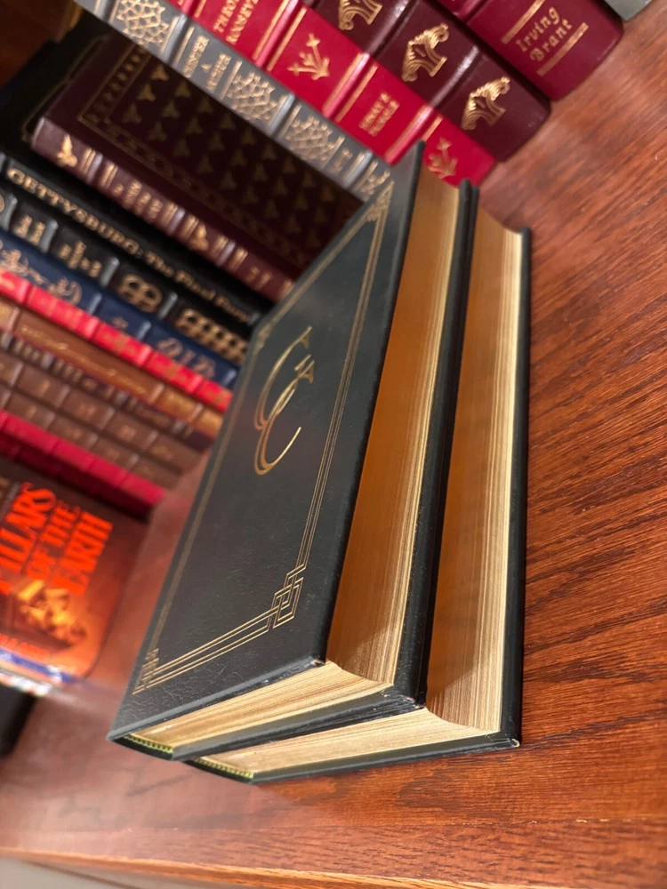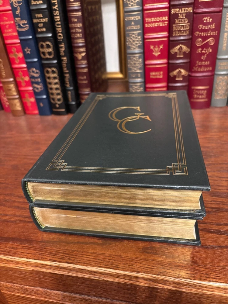 Easton Press(1987)full leather hardcovers, 22K gold accented, ribbed spine, decorated endpapers, ribbon marker, full color illustrations, book is in “Fine” condition, obviously unread and appearing unused, blank bookplates affixed to early blank page, 2 volumes, both with Notes.........(please see my many feedbacks for an idea of how I grade books and generally do business) (see my EBay store for the finest books & prices, many signed).......(No remainder marks or price-clipping)...............Always shipped in a box, well protected