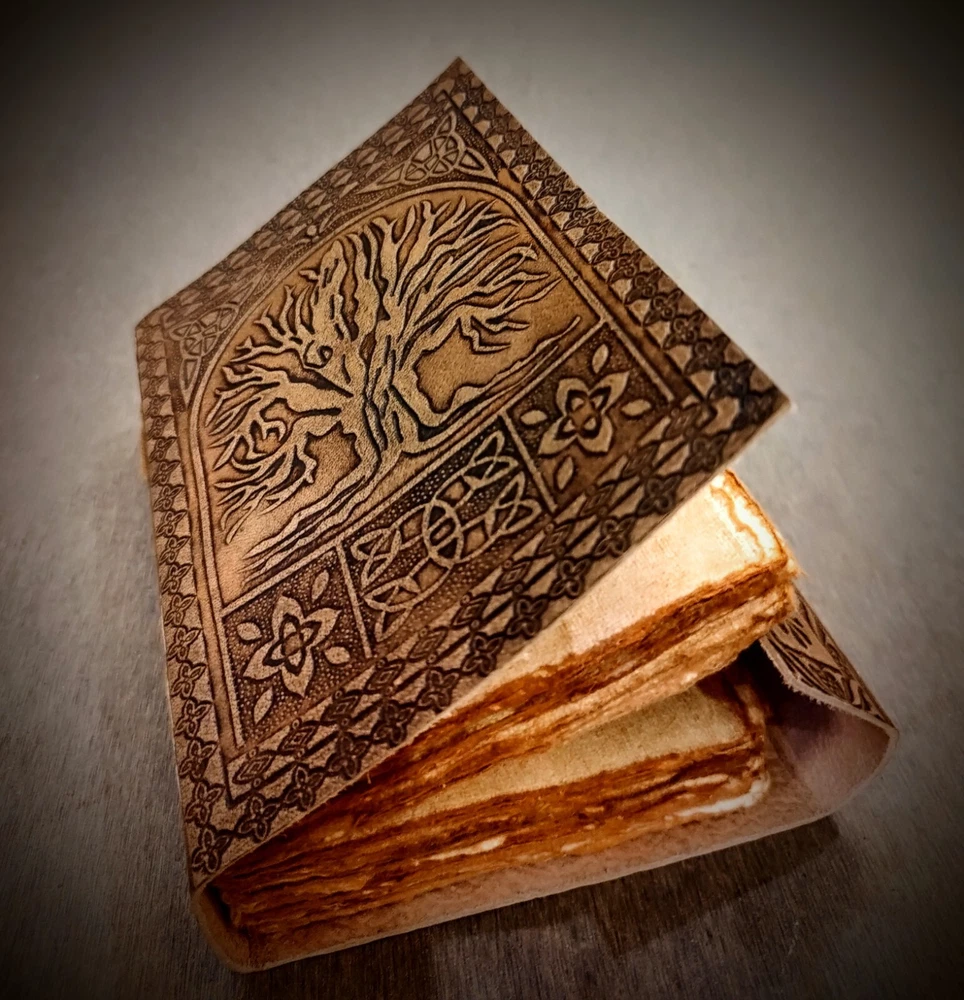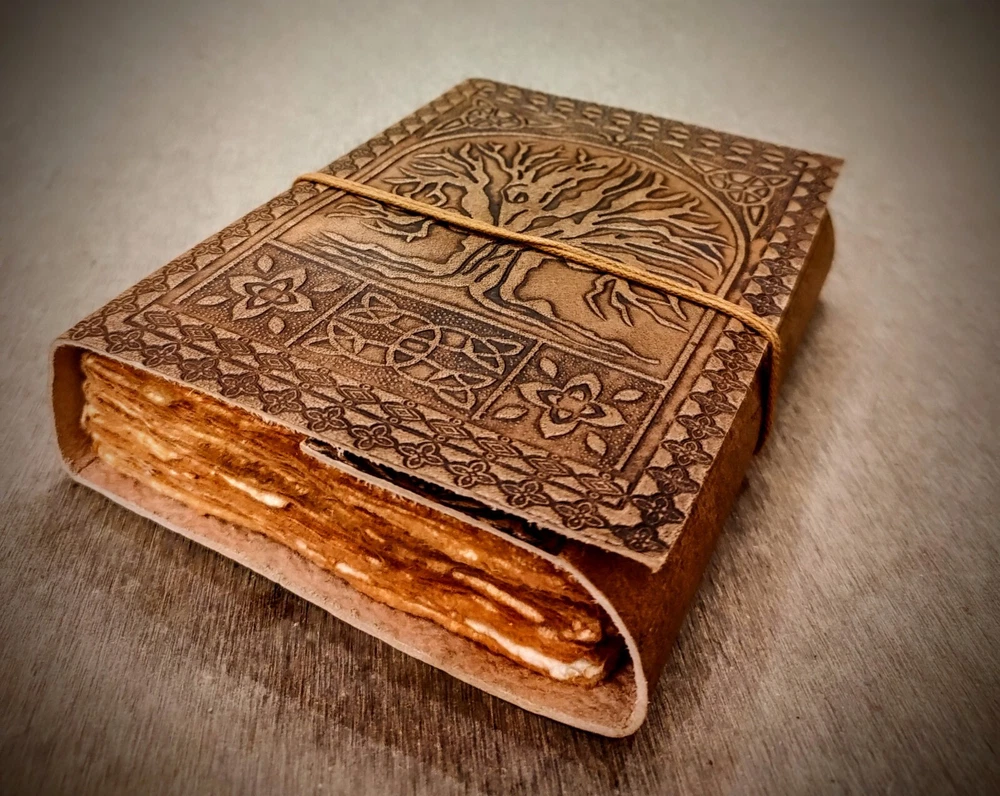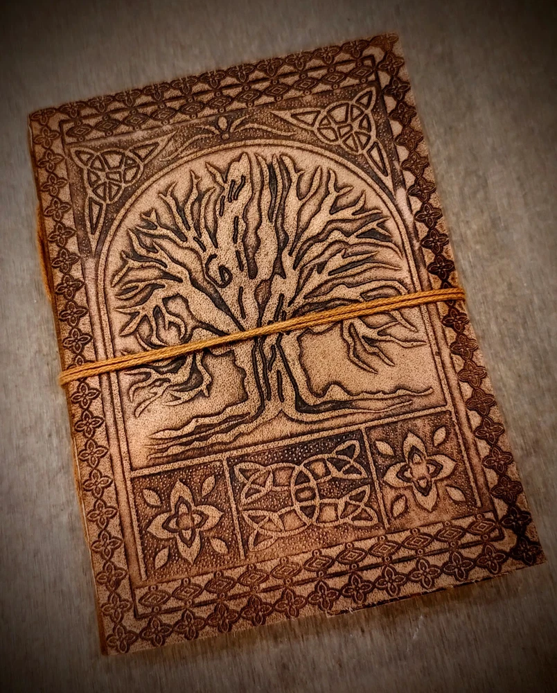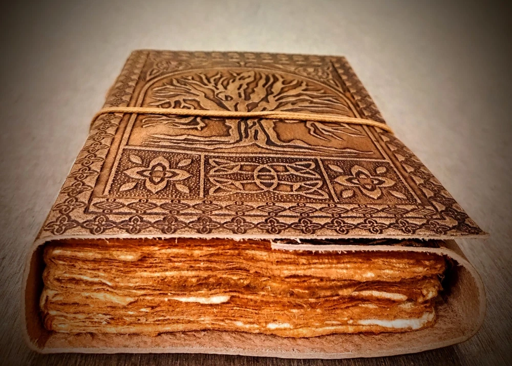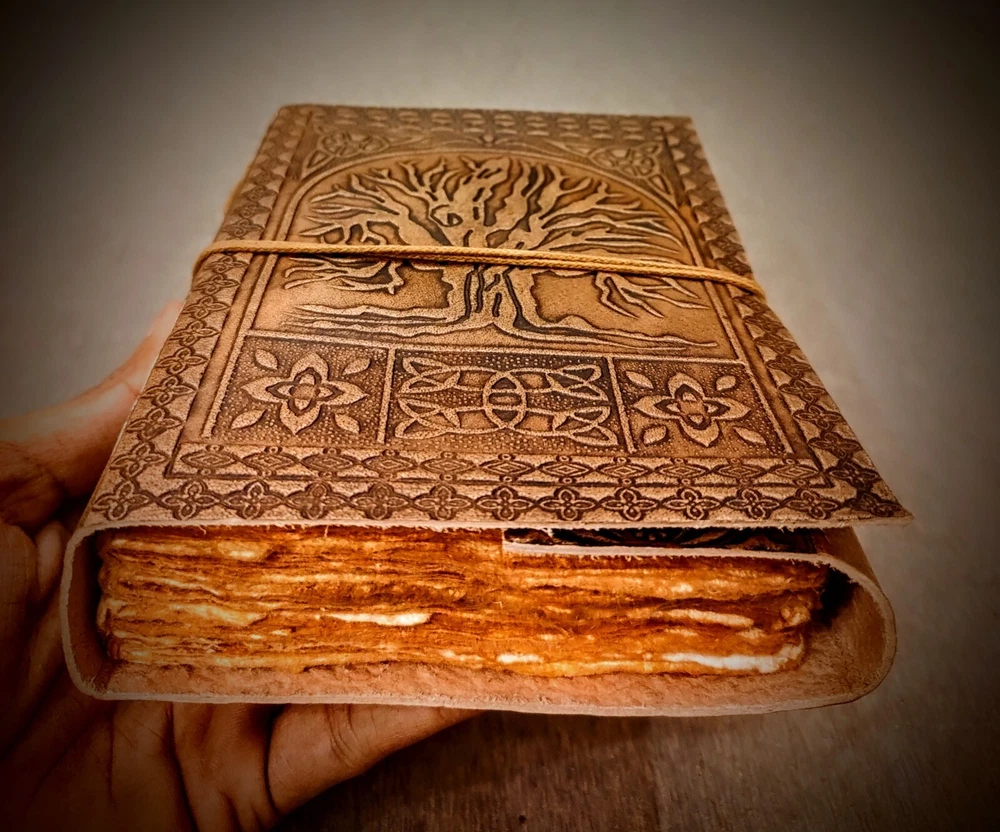 Handmade Leather Embossed Tree of Life Journal Experience the charm of traditional craftsmanship with our Handmade Leather Embossed Tree of Life Journal . This elegant journal is perfect for those who appreciate artistry and functionality in one. Features: * Premium Leather Cover: The journal features a stunning Tree of Life embossing on its durable leather cover, symbolizing growth, connection, and strength. * Handmade Cotton Recycled Pages: Each journal contains 100 sheets (200 usable pages) of eco-friendly, handmade cotton paper, available in White Pages for a clean look or Vintage Pages for a rustic, antique feel. * Size Options: Choose from four convenient sizes to suit your needs: 5 x 7 inches – Perfect for on-the-go journaling. 6 x 8 inches – Ideal for daily writing or sketching. 7 x 10 inches – Great for larger notes or illustrations. 10 x 13 inches – Perfect for creative projects, scrapbooking, or as a unique guestbook. * Versatile Usage: Whether for journaling, sketching, note-taking, or as a thoughtful gift, this journal offers endless possibilities. Why Choose Our Journal? Handmade with care, each journal is a unique piece of art. Eco-friendly materials ensure sustainability and a connection to nature. A timeless design that blends tradition with functionality. Embrace the beauty of handmade craftsmanship with this Tree of Life Leather Journal —a perfect companion for your thoughts, creativity, and memories.