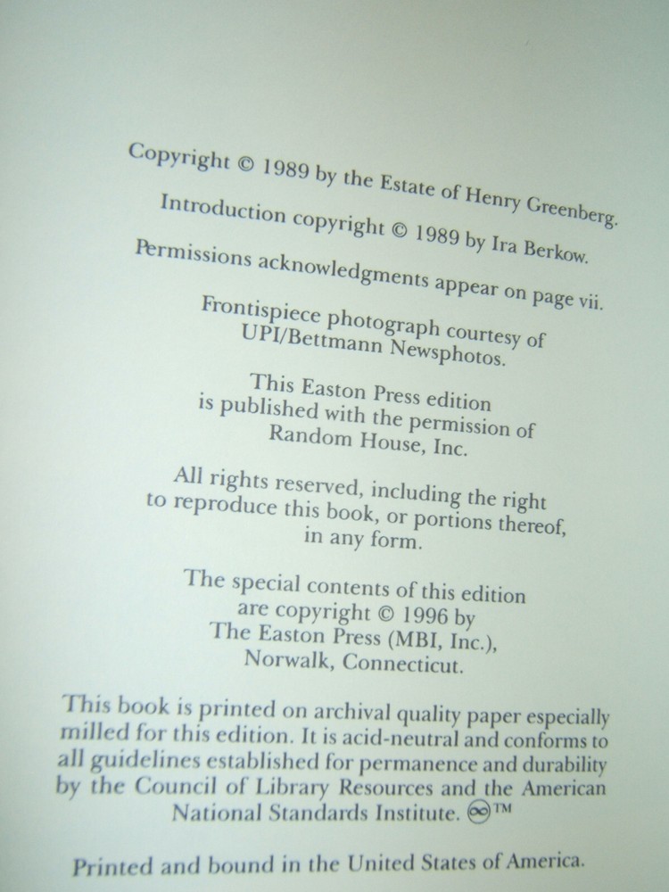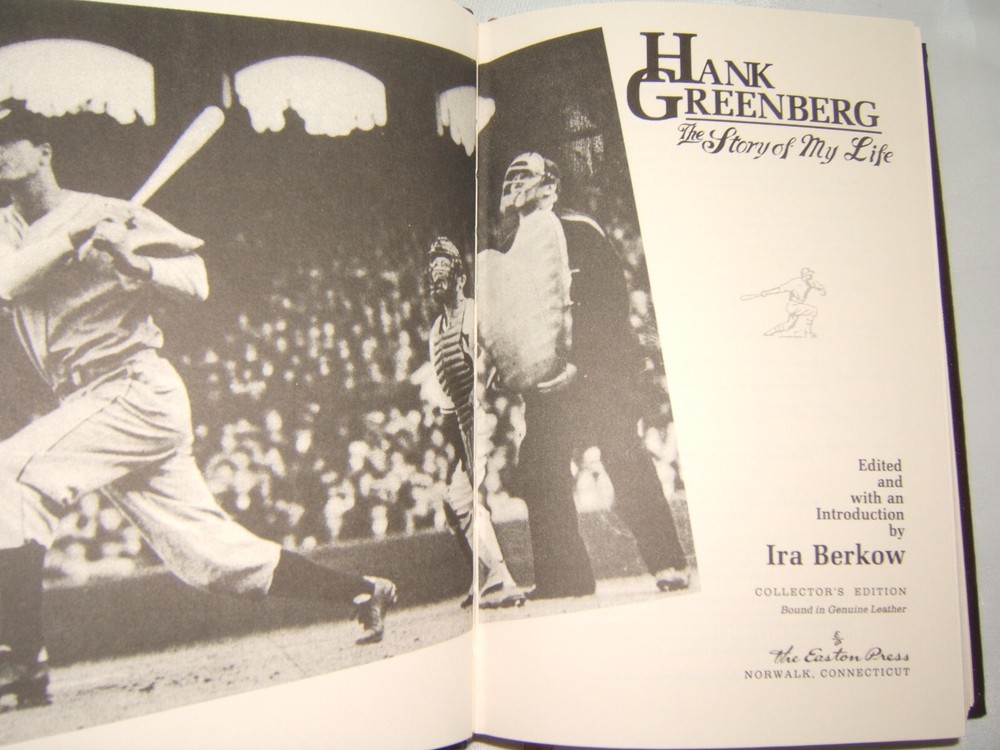 The Story of My Life. Hank Greenberg. Edited and with an Introduction by Ira Berkow. Collector's Edition. 6" x 9". 311 pages. Includes a dozen pages of B&W illustration, printed on glossy paper, and an unused, laid in, Easton Press custom bookplate. All books shipped in protective cardboard, or better. I strive for accuracy and completeness, but am not an expert in all I list. Questions welcome. I both buy and sell on eBay and want you to be as happy with your purchase as I expect to be with mine. Thanks for looking, and Happy eBaying! (H10W-1.12)