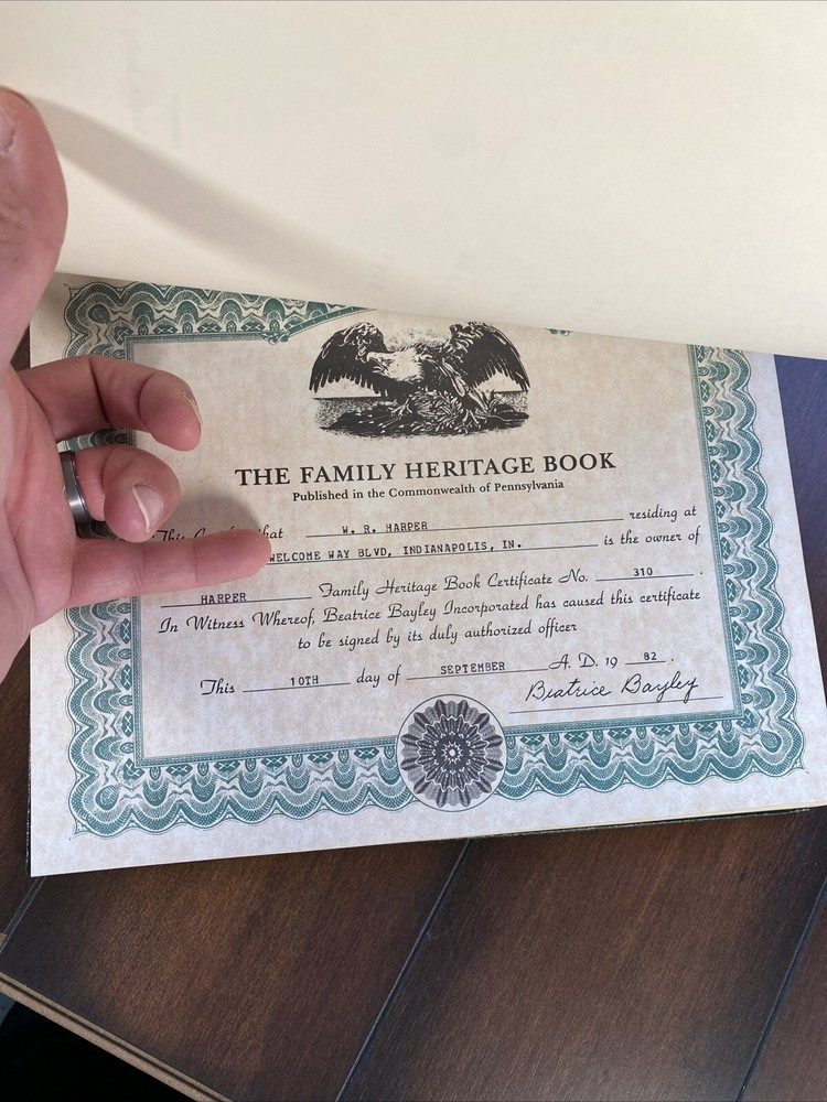 The Harper Family Heritage Book by Beatrice Baley is a leather-bound genealogy book that delves into the history and lineage of the Harper family. Published by Harper & Brothers in the United States, this book is a detailed exploration of the family's roots in North America. Illustrated with images and written in English, this original work is a valuable addition to any collection focusing on biography and autobiography. With no signature included, this book offers a glimpse into the past of the Harper family for collectors and history enthusiasts alike. A51