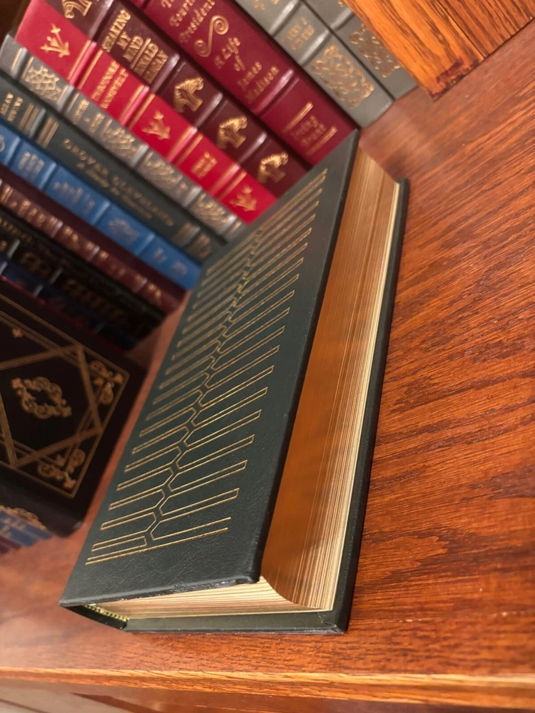 Easton Press(c.1985)full leather hardcover, 22K gold accented, decorated endpapers, ribbon marker, full color illustrations, book is in “Fine” condition, obviously unread and appearing unused, blank bookplate affixed to early page, includes Collector Notes, minor specks to bottom of boards from white bookshelf........(please see my many feedbacks for an idea of how I grade books and generally do business) (see my EBay store for the finest books & prices, many signed).......(No remainder marks or price-clipping)...............Always shipped in a box, well protected