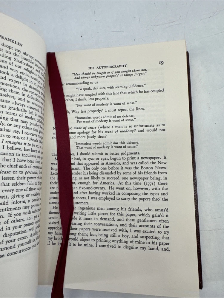 The product is a luxury edition hardcover of "The Autobiography of Benjamin Franklin" included in the Harvard Classics Volume 1. It was published in 1985 by Grolier Enterprises in the United States. The book is leather-bound and part of the Biographies & True Stories genre, focusing on literature. Multiple authors contributed to this English-language publication.