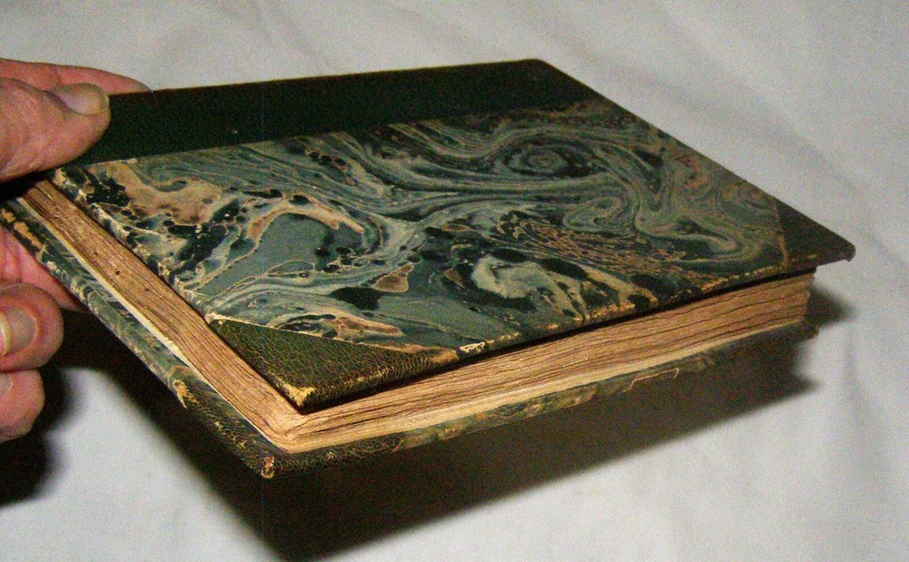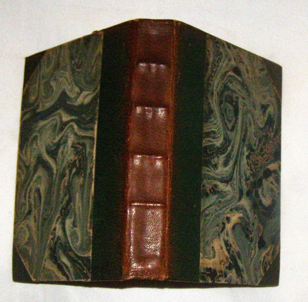 Old rare edition of Heine MEMOIRS. translated from German into French by Bourdeau. Paris 1884 Calmann Levy Editeur, 142pp, deckled edge paper, Green Marbled endpapers and covers with Grenn Leather spine and corners. Green Leather spne has faded some to brown from daylight exposure on shelf. 7 1/4" in height. VG clean WS