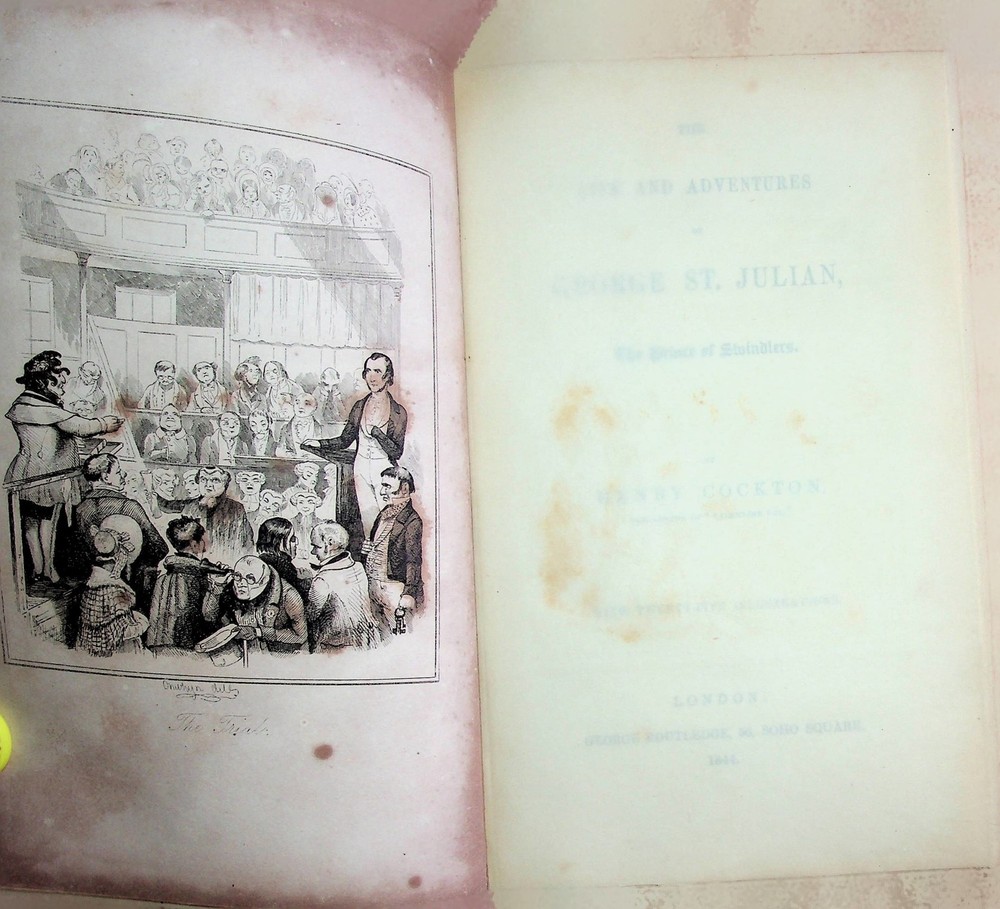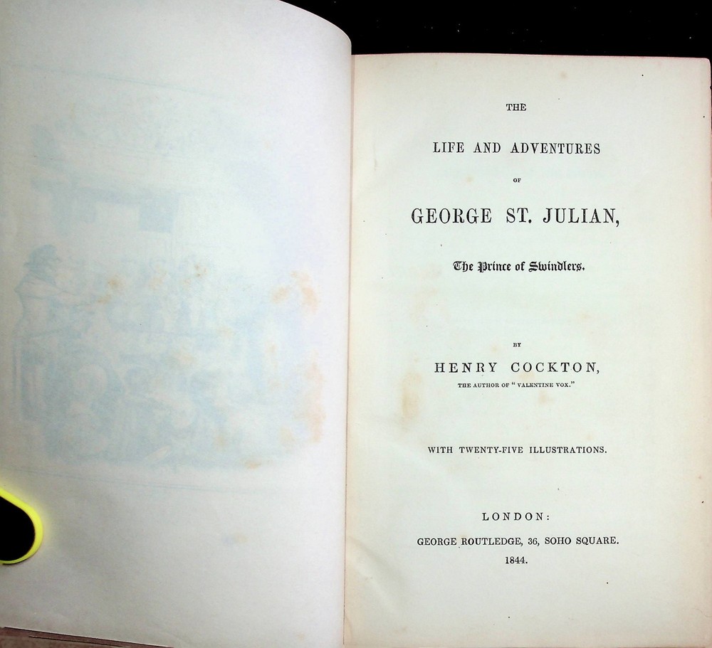 The Life and Adventures of George St. Julian Author: Henry Cockton Title: The Life and Adventures of George St. Julian Publication: London: George Routledge, 1844 Edition: Apparent First Description: 270. A very good copy in 3/4 red leather on marbled boards Some modest scuffing on boards and edges Front spine is beginning to split but overall the book is still tight and sound, albeit a bit bowed All 25 illustration plates are present The text is clean, however there is age darkening, particularly on edges of plates A very scarce title, especially in such good condition No doubt helped by its life in the library of a wealthy owner Provenance: It appears to have been custom bound for the noted Philadelphia businessman, Rodman Wanamaker, (see below) whose personal bookplate is affixed to the front pastedown Henry Cockton (1807 – 1853) was an English novelist, remembered primarily for The Life and Adventures of Valentine Vox, the Ventriloquist His third novel, George St George Julian The Prince was intended to expose financial corruption, fraud and forgery In the course of his misadventures the eponymous hero encounters several rogues and cheats, including the historical Gregor MacGregor, the self-styled Cazique of Poyais The publisher collapsed before Henry Cockton had received any payment for George StJulian , and he was effectively bankrupted, being imprisoned for debt, but being released after declaring himself an insolvent debtor Lewis Rodman Wanamaker (1863 – 1928) was an American businessman and heir to the Wanamaker's department store fortune In addition to operating stores in Philadelphia, New York City, and Paris, he was a patron of the arts, of education, of golf and athletics, of Native American scholarship, and of early aviation He served as a presidential elector for Pennsylvania in 1916, and was appointed Special Deputy Police Commissioner of New York City under Richard Enright in February 1918 In this capacity, he founded the world's first police aviation unit and oversaw reorganization of the New York City Reserve Police Force In 1916, Wanamaker originated the proposal for the Professional Golfers' Association of America 270 pp. Very Good+. Seller ID: AA1243 Baykorp Books Selling quality books and related items at reasonable prices. Terms All orders ship within two business days. Standard mail is USPS Media Mail. Expedited and international shipping are also available. We offer combined shipping on multiple orders. All items are guaranteed to be as described or they may be returned within 30 days of receipt for a full refund. This listing was created by Bibliopolis.