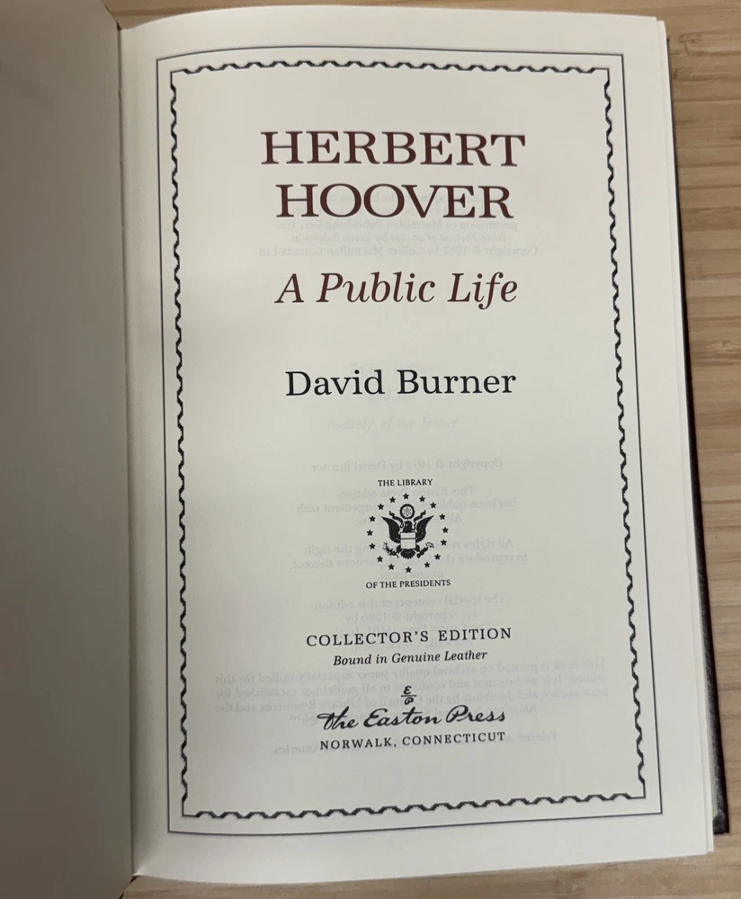 Herbert Hoover A Public Life By David Burner Published by Easton Press as part of The Library of the Presidents Book is in excellent condition with previous owners bookplate affixed to inside of front...
