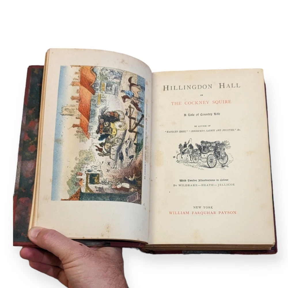 This vintage book, titled "Hillingdon Hall or The Cockney Squire A Tale of Country Life," is a charming addition to any collection. The leather binding and morocco leather special attributes make this book a unique find. The author, Robert Smith Surtees, brings to life the story of a cockney squire and his adventures in the countryside. The illustrations by Wildrake, Heath, and Jellicoe add to the beauty of the book. This original edition was published by Morrison & Gibb in New York and is written in English.