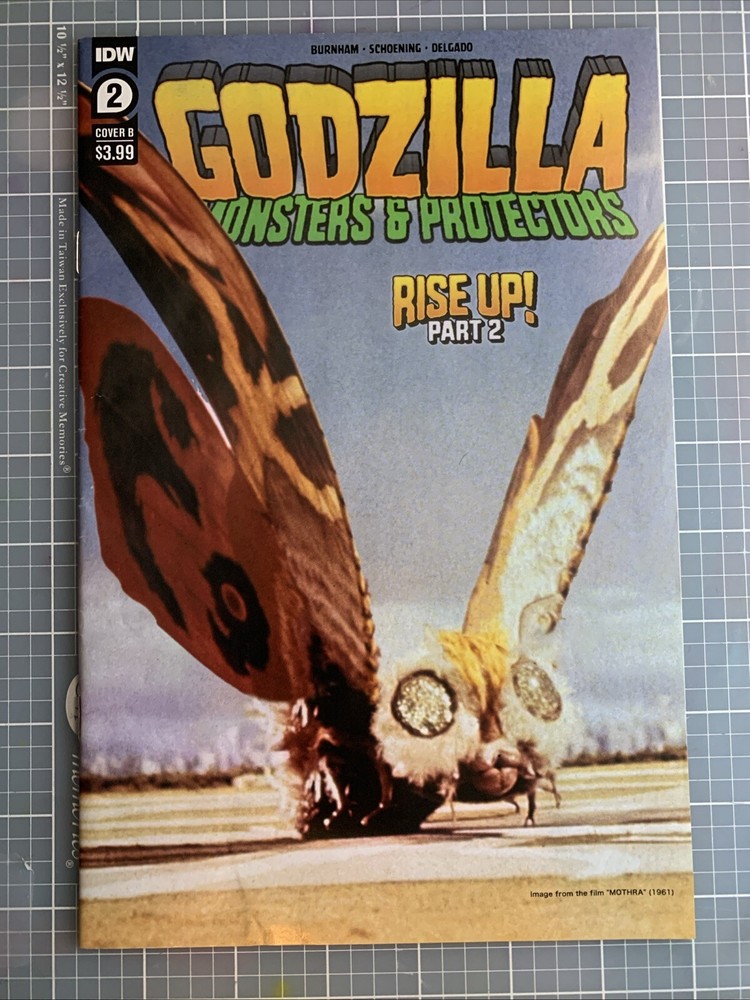 The IDW Comics Godzilla: Monsters & Protectors #2 B Cover 2021 is a single issue comic from the Godzilla series featuring characters Godzilla and Mothra in a Modern Age storyline. Published by IDW Publishing in 2021, this comic is part of the US Comics tradition and includes boarded features. It is a collectible item within the Comics & Graphic Novels genre.
