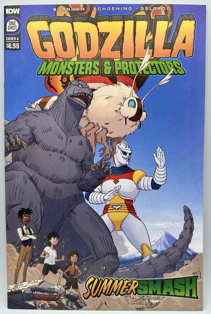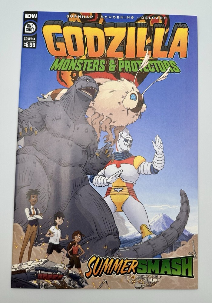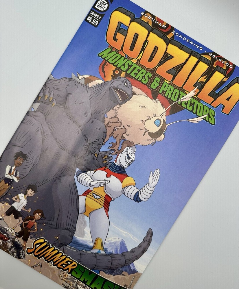 The product is a comic book titled "Godzilla: Monsters & Protectors - Summer Smash" from IDW Publishing, part of the series "Godzilla: Monsters & Protectors." It is issue number 1, published in 2023 in English. The comic features boarded pages and falls under the tradition of US Comics in the Modern Age era.