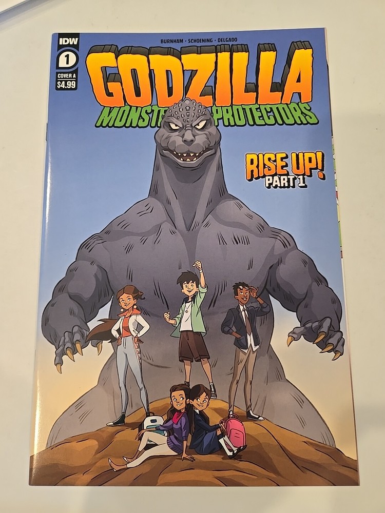 Get ready to embark on an exciting adventure with the IDW Godzilla Monsters and Protectors #1 Cover A (2021) "Rise up" Schoening comic book. This single issue comic book features the iconic Godzilla character and is a must-have for any fan of the US Comics tradition. The comic book is written by Erik Burnham and illustrated by Dan Schoening, with cover art by Schoening himself. It is a variant cover featuring the phrase "Rise up" in bold lettering. The comic book is in English language and is intended for a general audience. This collectible item is perfect for those interested in action, adventure, and monster genres.