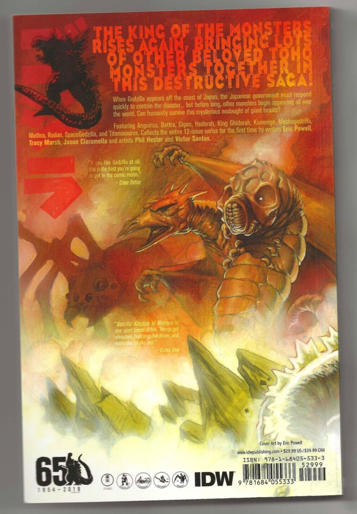 For sale is Godzilla Kingdom of Monsters trade paperback. IDW Publishing, first printing. Each comic will be bagged and boarded. We ship using bubble wrap and cardboard boxes. We only ship internationally via the eBay Global Shipping program. We do combine auction wins to save on shipping. Put all the items you want into the shopping cart and when you go to pay it will automatically combine shipping costs for you.