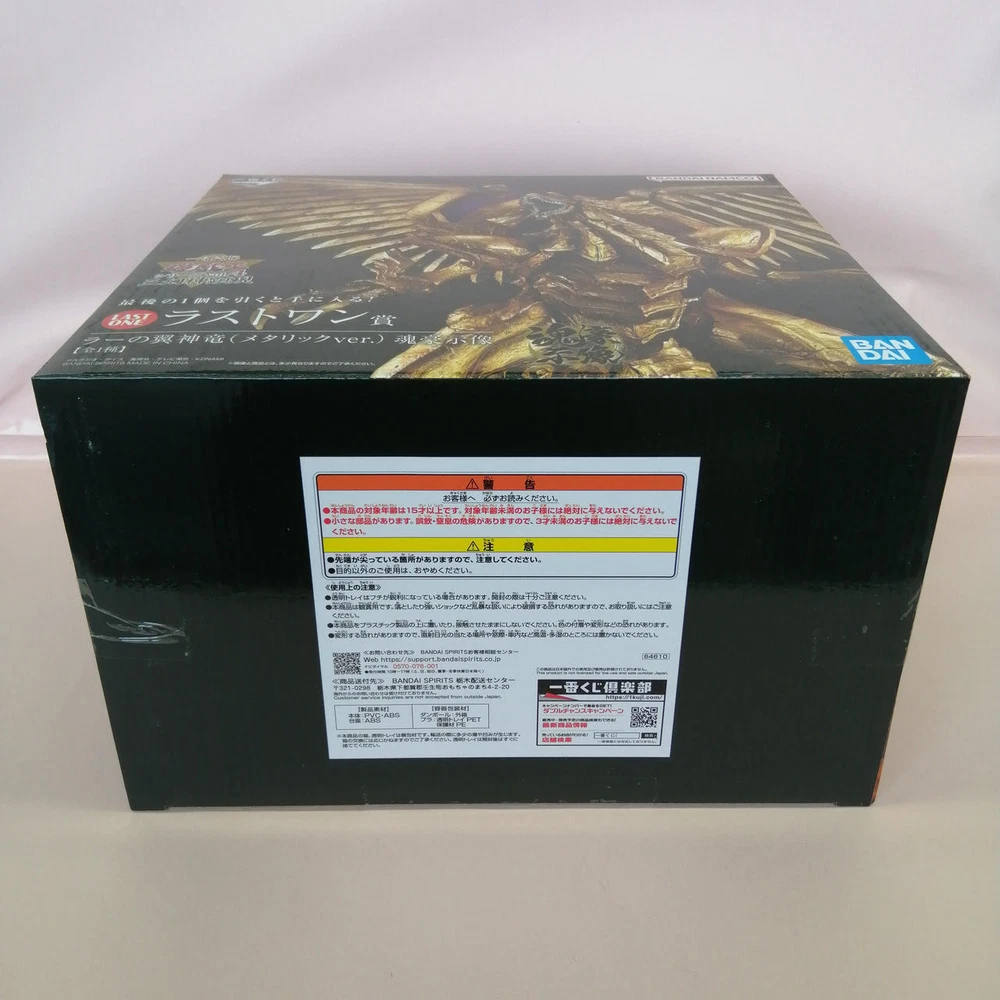 Ichiban Kuji Metallic Version Yu-Gi-Oh! Last One Prize The Winged Dragon of Ra Description lease see photos for details. It is unopened. Shipping We will ship it within 5 business days. Thank you very much! Shipping and Handling We are not responsible for wrong or undeliverable addresses.The shipping fee is not refundable. Return Policy We will issue a 20-50% refund depending on a returned item condition. All Returns merchandise must be in the same condition as you received, in original packaging and all the tags must be attached to the item, and in a re-saleable condition. Used, worn, washed, or altered merchandise cannot be returned. Lacking accessories is not acceptable. Also, no refund is issued if a returned item is not what we sent or what you described. **International Buyers – Please Note: Import duties, taxes, and charges are not included in the item price or shipping charges. These charges are the buyer's responsibility. Please check with your country's customs office to determine what these additional costs will be prior to bidding/buying These charges.