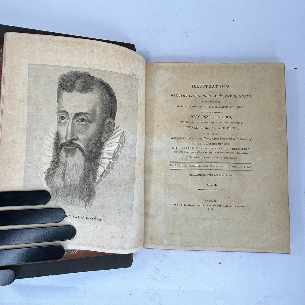 Illustrations of British History, Biography, and Manners: in the reigns of Henry VIII, Edward VI, Mary, Elizabeth, and James I by Edmund Lodge - 3 Volumes Description 1791, G. Nicol, Ex-Library, Leatherbound, 3 Volumes, Vol. 1 (374 pp plus 15 pp of index); Vol. 2 (426 pp plus 15 pp of index); Vol. 3 (404 pp plus 16 pp of index), Illustrated, Text in English. Volume 1: Both covers are detached, Foxing through text, Page edges dyed, Miscut pages. Volume 2: Front cover detached, Foxing through text, Page edges dyed, Miscut pages, Some pages have library name embossed. Volume 3: Back joint splitting, Page edges dyed, Miscut pages, Foxing through text, Some pages have damp stains. Offered by the Antiquarian, Rare, and Collectible department of Better World Books. Your purchase benefits global literacy programs. 100% satisfaction guaranteed. Payment Payment is accepted via PayPal, Google Pay, and Credit Card ( Mastercard, Visa, Discover, and American Express ). Payment is expected to be completed within four (4) business day (Mon-Fri). Items not paid for within four (4) business days will result in order cancellation and product being relisted at original listing price. Shipping Domestic Shipping: Standard Shipping has a 1-2 business day handling time. Once orders are shipped they will arrive in 2-8 business days with tracking included. International Shipping: International Shipping has a 1-2 business day handling time. Once orders are shipped they will arrive in 10-21 business days. Terms of Sale We offer a 100% satisfaction guarantee on all products. Should you be unhappy with your order, or would like to arrange a return, please contact us within 30 calendar days of receipt. About Us Better World Books is a for-profit, socially conscious business and a global online bookseller that collects and sells new and used books online, matching each purchase with a book donation. Each sale generates funds for literacy and education initiatives in the U.S., the UK, and around the world. Since its launch in 2003, Better World Books has raised $35 million for libraries and literacy, donated over 38 million books, and reused or recycled more than 475 million books. Contact Us Our team is always happy to help and is available Monday through Friday (7:00 AM - 2:30 PM ET). Send us a message through eBay should you have any questions about listings, orders, or offers.