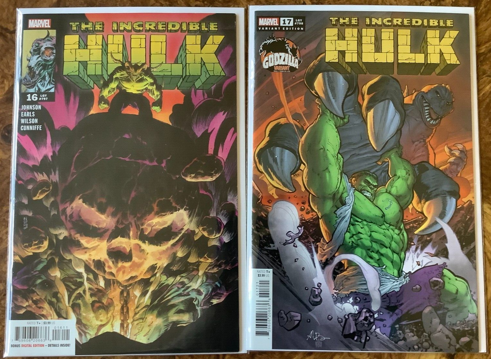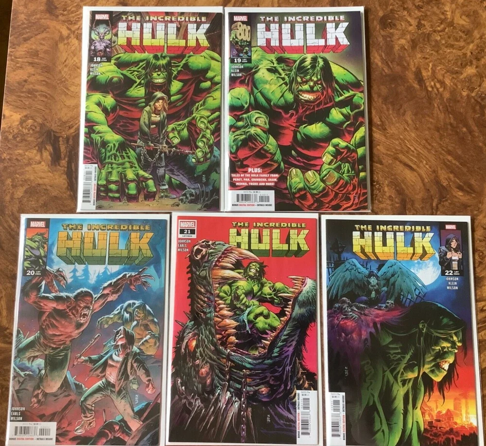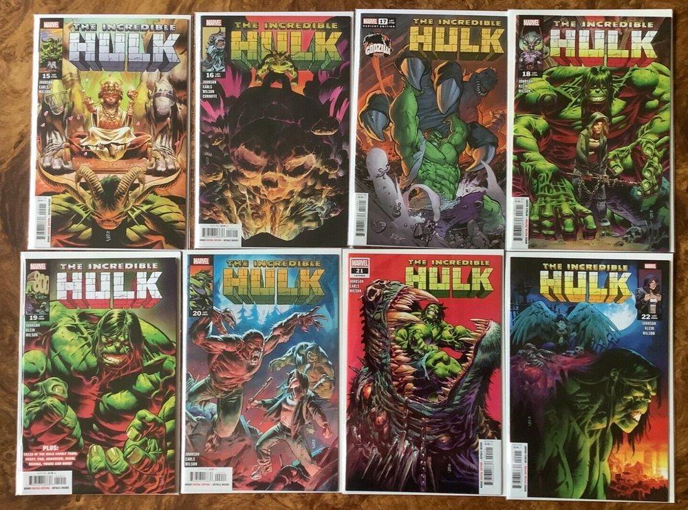 Incredible Hulk 15-22 by Phillip Kennedy Johnson. Issue 17 has a Godzilla variant cover. I'm not a professional, but most of my books have been read once and then bagged and boarded. I have posted several pictures. Message me if you would like more pictures or have any specific questions. I'm selling a lot of my 30 year collection over the next few months. Follow me if you're interested in this series. I offer combined shipping.