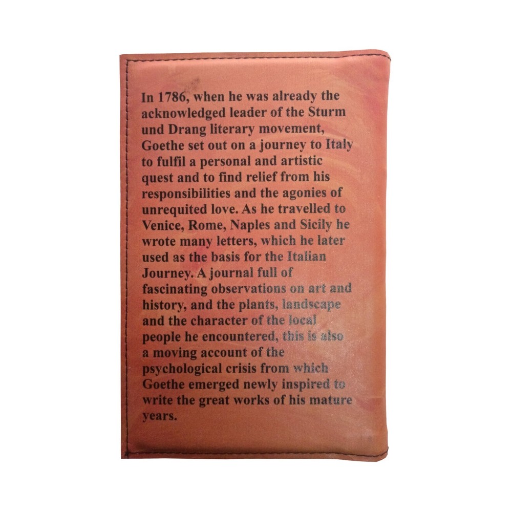 Books, as much as experiences, change my life, and I decided to make a limited collection of all the books I read and loved. And maybe you also will find in my collection a book that you enjoyed, and it even might have influenced your life. The book is a soft cover which I recycle and transform into a limited edition, personalized hardback with leather cover, designed and made by me. First, I prepare the book by embedding cotton cords into the spine. Adding 2 mm wood boards to the front and back. And reinforcing everything with cloth. To make the cover I use grade A, naturally tanned hide, I buy from a tannery in north Spain. It is the same leather Louis Vuitton uses to make his bags, so it is top quality. I do all the processing of the leather myself. First, I design the cover, and what I did here I decided to use the 18th or early 19th century painting of a couple of gents, seemingly discussing Italian fauna, with the imposing ruins of Colosseum in the background. And I thought it nicely represented the narration. Next, I mix leather inks and screen them on the surface of the leather. The inks are partly absorbed by the skin to create a permanent bond. Finally, I coat the leather with protective solution. The leather gives the image a vintage look and beautiful texture, and it will age nicely with time. Inside the front cover. I can print a personal message or a quote from the book. The book is beautiful. Visually it has a very nice texture, it smells great, and the more you handle it the more beautiful it will become. And it makes a great gift for yourself, or somebody who appreciates books. So if you want one, don’t snooze, or you might lose. I will make a total of 100 editions. Each one will be initialed by me and numbered. The numbers will go in chronological order from 2 up, since number 1 stays with me. Book - Italian Journey by Johann Wolfgang von Goethe. Size- 8 x 5.5 inches (21 x 13.5 cm). Edition - 11 of 100, initialed and numbered. If you are interested in a different title, send me a message and I will give you a quote. You can see the video of how I make the book cover in the link below https://youtu.be/WUC2lGlsgGE If you would like to hear my review of this title, you can find it in the following link https://youtu.be/9yTJlgqNENw Returns: This is a custom-made item, so returns or exchanges are not accepted. But you can contact me if there is any problem with your order. Colors: Since I make each item to order, the color might vary from the pictures. It depends on how the inks mix and how they react with leather. Shipping: I make each item to order, and it takes a few weeks, since I need to find the book first. I go to the post office once a week. Estimated delivery time is about two weeks, but it depends on the postal service and customs. And occasionally there are delays, and it might take a month or so to arrive.