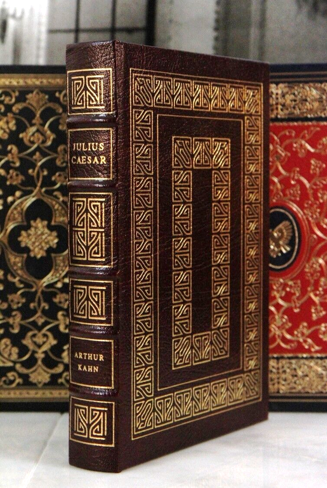This Easton Press edition of *Julius Caesar* by Arthur Kahn is a stunning collector's piece. The leather binding is rich and vibrant, with minimal shelf wear, and the gilt-edged pages add a touch of elegance. The included introduction card is a nice bonus, making this scarce biography even more special. A must-have for history lovers and collectors alike!