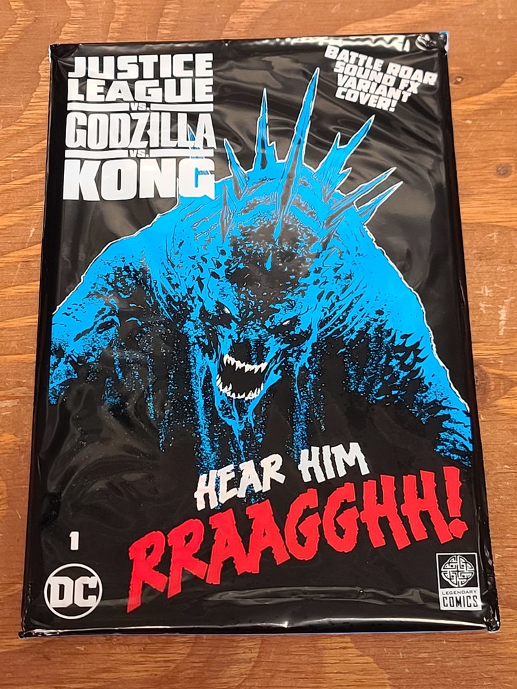 JUSTICE LEAGUE VS GODZILLA VS KONG #1 CVR F GODZILLA ROAR SOUND FX VAR DC COMICS Dc comics (W) Brian Buccellato (A) Christian Duce (CA) Christian Duce HEROES AND MONSTERS COLLIDE IN THE CROSSOVER EVENT OF THE YEAR! The cataclysmic crossover event of the year is here as the DC Universe clashes with Legendarys Monsterverse in Justice League vs. Godzilla vs. Kong. Clark Kent is enjoying a night off with a very important dinner planned with his girlfriend, Lois Lane, when the entire city shudders under the weight of the monstrous Godzilla, who emerges from the bay! What started as a routine clash between the Justice League and the Legion of Doom takes a dangerous turn when the wall between worlds is breached...with Godzilla, Kong, and the Monsterverse emerging on DC's Earth! What ensues will be a brawl of unprecedented scale and destruction from acclaimed writer Brian Buccellato (Injustice) and bestselling artist Christian Duce Item is Image may be a stock image provided by the publisher if it is not an actual photo. You are purchasing the item listed as it is listed in the title. Covers are not virgin or sketch unless explicitly listed as such in the title. Fixed Price Standard Size Single Issue Comic Books are bagged and boarded. Auction Item Standard Size Single Issue Comic Books are bagged and boarded if they exceed $2.98. You can purchase bags and boards in quantities of 3 by searching our store for "bags and boards". We will combine shipping on multiple purchases. For shipments within the United States, we charge a flat $4.99 for up to 40 items on one invoice. International Shipping is offered through eBays Global Shipping Program. eBay does not allow us to change or even send international invoices. They handle that direclty. If you have further questions about international shipping please contact eBays Global Shipping Program.