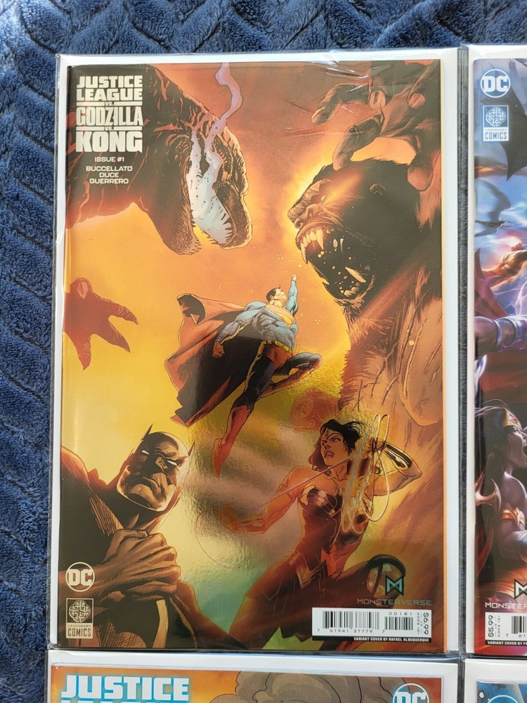 JUSTICE LEAGUE VS GODZILLA VS KONG #1-6 + Two #1 Variants - See List #1 Albuquerque Foil Variant #1 Mattina Variant I've been collecting comics for over 40 years and have recently decided to start selling off my personal collection over the coming months. Although I've bought 100's of comics on eBay over the past 23 years, this is the first time I've ever sold any. I'll be doing this both on eBay, at the Golden Orbit comic fair and the London comic mart shows at the Royal National Hotel. All of my comics have been stored safely in purpose built cabinets and all raw comics have been bagged and boarded since purchase and will be sent out the same. I know the standard I expect regarding packaging for comics sent in the post and I'll make sure I ship any purchases any way I would expect to receive them myself.