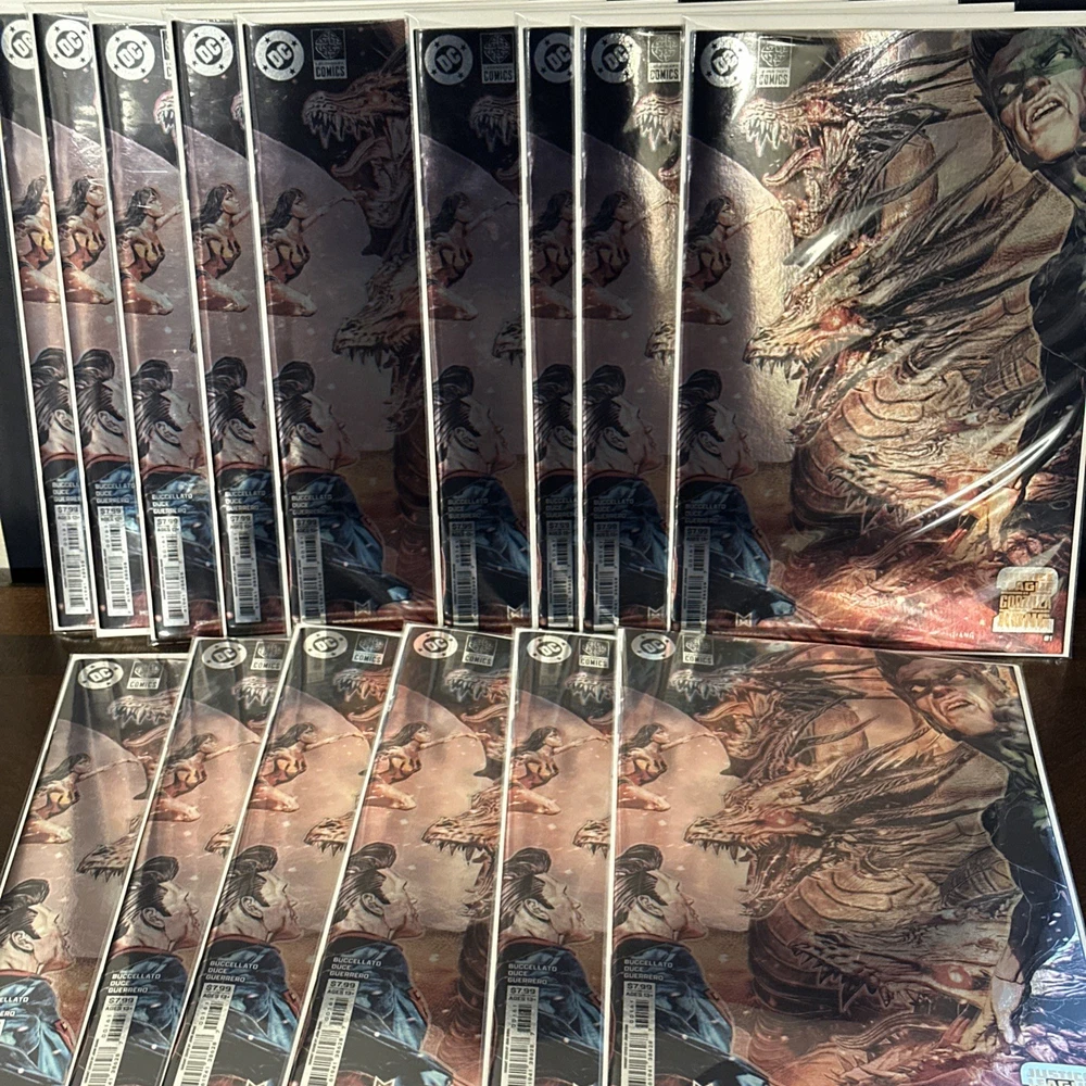COVER SELECT - All variants including Incentives - See drop down menu and photos! Thank You!! THE JUSTICE LEAGUE RETURNS TO LEGENDARY EARTH! In the aftermath of last year's Justice League vs. Godzilla vs. Kong, Task Force X launches a plan to develop hybrid Titans that Amanda Waller can control to guard against future titan attacks on our Earth. To stop Task Force X, the Justice League travels to Legendary Earth and must face the dangers of the Hollow Earth, Kong, and Godzilla, King of the Monsters! Shipping: We strive to ship within 1 day of items purchased. In some situations, shipping may be delayed at the request of the distributor or the quality of the items we have in stock. We check all items as they come in and are vigilant of the high-quality standards of our customers. All orders over $400 will be shipped with a Signature Required via UPS or FedEx. We Combine Shipping: Items in your cart should automatically combine, except in cases involving accepted offers. For orders containing in-stock items, or if auto-combination fails, please include a note or message us and request combined shipping. All shipping is weight-based shipping. Each package is weighed to ensure accurate prices. If the label comes out cheaper than what you paid, we do reimburse the difference to your total order. Packaging Standards: Comic Books: Shipped bagged and boarded, securely packaged in a Gemini mailer with a filler pad for the best safety of the items. Graded Books: Shipped in a protective bag and shipped in a Gemini Graded Comic Book Shipper. For Graded books and higher dollar items we ship via UPS or FedEx Funko: Shipped in an oversized box and bubble wrapped. The extra space is filled with packing paper to ensure the item does not move during transport. We have EkoTek Pop Protectors for 4-inch Vinyl Figures. Action Figures/Toys/Cards: All items will be bubble wrapped and packed in over-sized boxes. We use Air packs as well as packing paper to ensure the safety of the item. Precious Metals: Bullion coins come in air-tite capsules. Older coins such as Morgan Dollars/Peace Dollars will come in paper coin flips stapled. Placed inside plastic bags, then inside a bubble mailer and then placed in a box. We take extra care in making sure the boxes are not identified as coins and that the coins do not move/rattle to make a sound while shipping. All precious metals sold are photographed and catalogued. You will receive photos of the actual coin you purchased! Returns: Returns accepted within 30 days-money back. All returns must be shipped with original packaging and in the same condition as you received it. After we receive the return and inspect the item, ONLY THEN WILL WE ISSUE A FULL REFUND! All returned precious metals will be weighed, photographed and tested to authenticate the item before a refund is initiated. Customer Support Order Inquiries: If you believe your item should have arrived but has not, please contact us before opening a dispute, and we will address the matter promptly. Issue Resolution: If you encounter any issues with your order, please reach out to us directly before leaving feedback. Our team is committed to resolving concerns to your satisfaction. Thank you for visiting Triple T Collectibles! We appreciate your business! Visit our website www.tripletcollectibles.com Triple T Collectibles, a Limited Liability Company (LLC) Affiliates: