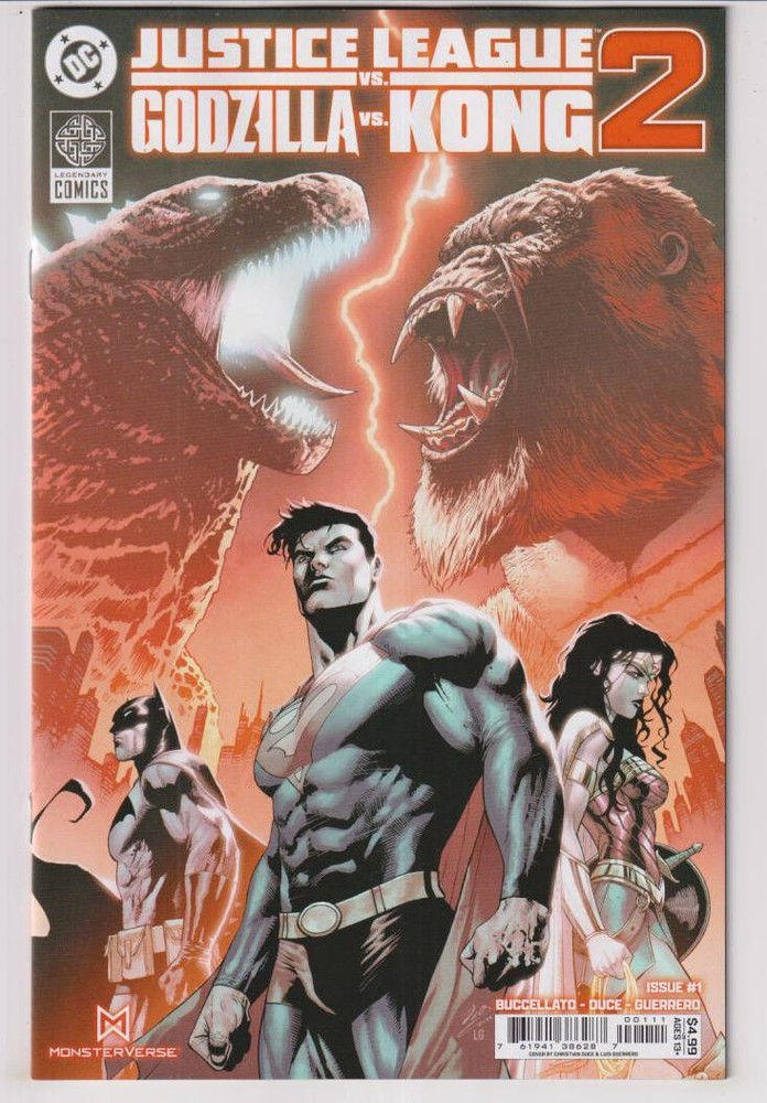 JUSTICE LEAGUE VS GODZILLA VS KONG 2 #1 (OF 7) CVR A CHRISTIAN DUCE (W) Brian Buccellato (A/CA) Christian Duce THE JUSTICE LEAGUE RETURNS TO LEGENDARY EARTH! In the aftermath of last year's Justice League vs. Godzilla vs. Kong, Task Force X launches a plan to develop hybrid Titans that Amanda Waller can control to guard against future titan attacks on our Earth. To stop Task Force X, the Justice League travels to Legendary Earth and must face the dangers of the Hollow Earth, Kong, and Godzilla, King of the Monsters! ----------------------------------------------------- Save on shipping by combining extra comics in the cart prior to checkout!!! We do not promise any specific grade or condition. View the scans provided carefully on as large a monitor as possible and if you need more information to decide stop by the store. Not shipping to Canada or other international locations. VA Shipping Destinations and local pick-up will have VA Sales Tax at 5.5% added. Priority Mail shipping is NOT a guaranteed service for shipping time. Most are fast but occasionally one can take weeks to arrive. This is not something we have any control over.