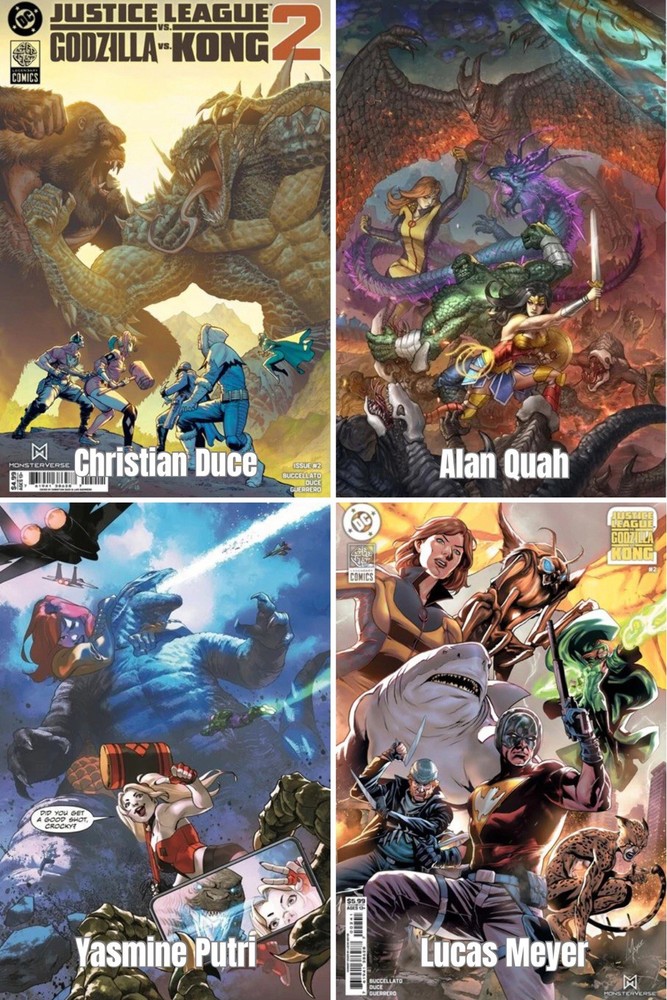 Cover art by: CVR A CHRISTIAN DUCE CVR B YASMINE PUTRI CVR C ALAN QUAH CVR D LUCAS MEYER THE JUSTICE LEAGUE RETURNS TO LEGENDARY EARTH! In the aftermath of last year's Justice League vs. Godzilla vs. Kong, Task Force X launches a plan to develop hybrid Titans that Amanda Waller can control to guard against future titan attacks on our Earth. To stop Task Force X, the Justice League travels to Legendary Earth and must face the dangers of the Hollow Earth, Kong, and Godzilla, King of the Monsters! THIS IS A PRE-ORDER ITEM. THE DATE IN THE TITLE IS THE RELEASE DATE. IT SHOULD SHIP THAT WEEK. Bundle your order according to release date if you would like all your books on that particular date . Titles with (ships now) are currently in hand! Cover art is subject to change, items may ship earlier or later than anticipated without notice depending on if there are any issues with shipping from the distributor. All sales are final. Unless otherwise noted: Comics will ship bagged boarded, and secured in a Gemini mailer IMPORTANT: Final order cutoffs (FOC) We can only ship by the order once all items have been released . If you mix presale and released items, your order will be marked as shipped. However, your order will not ship until the publisher releases the last item. If you would like your order on or around release date you should bundle your order according to release dates. Your items may be marked as shipped if the item/s are delayed, arrive damaged, or the eBay estimated ship time expires. We do our best to communicate the reason, but sometimes depending on how busy we are, we may not be able to. If you feel that you should already have your item but do not, please reach out to us before opening a dispute so we may address the situation. If there are any problems with your order, please message us before leaving feedback and we'll be happy to work with you to fix the situation. Thank you for your support!