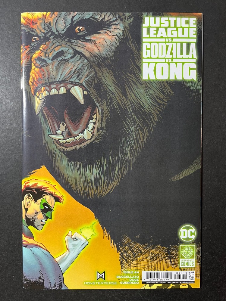 Up for sale is a NEAR MINT OR BETTER copy of JUSTICE LEAGUE VS. GODZILLA VS. KONG #4! Please take a look at the pictures to judge the condition for yourself, and I'm always happy to answer any questions. Take a look at my other items for sale. Combined shipping is always available! I ship most single books in rigid cardboard comic mailers. No flimsy envelopes! Anything too big to fit comfortably in a mailer gets shipped in a box with plenty of bubble wrap! I want to make sure that the book(s) arrive to you in exactly the same condition they leave me (no matter how bumpy the ride).