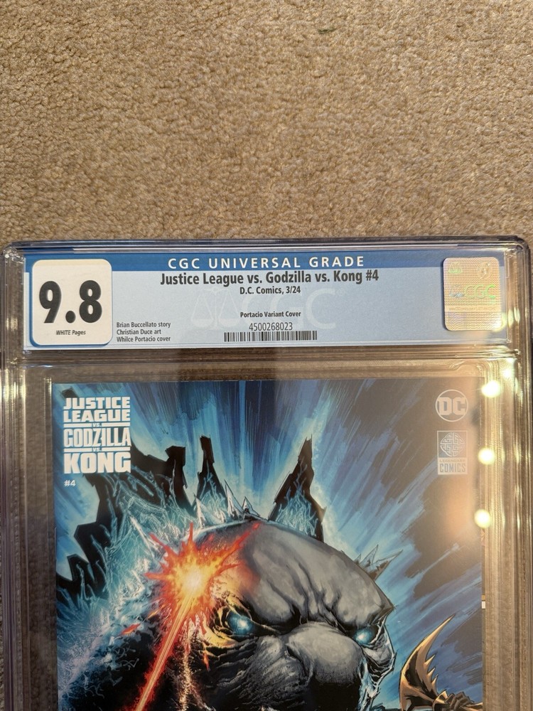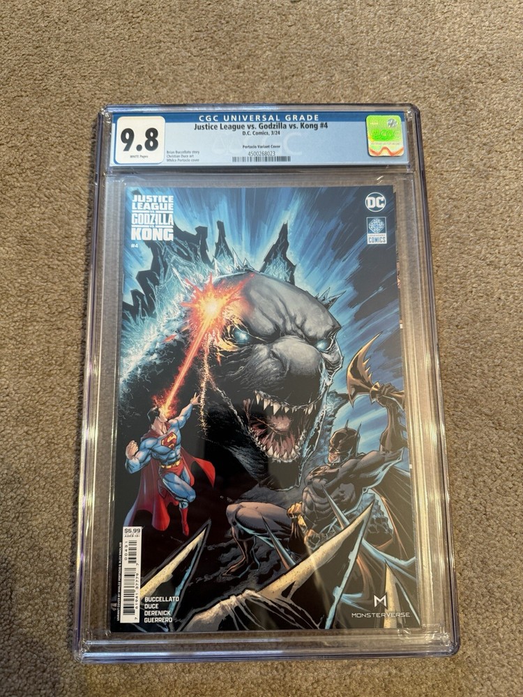Dive into the epic showdown with the "Justice League Vs. Godzilla Vs. Kong #4" and experience the Portacio Godzilla Variant in stunning CGC 9.8 grade. This issue is a must-have for enthusiasts, capturing the intense rivalry between the iconic monsters and the League's valiant fight to preserve humanity. Immerse yourself in the rich tradition of US Comics and expand your collection with this remarkable piece from the 'Justice League Vs. Godzilla Vs. Kong' series. Issue number 4 is a key chapter in this gripping narrative, offering an unforgettable visual treat with the Portacio Godzilla Variant.