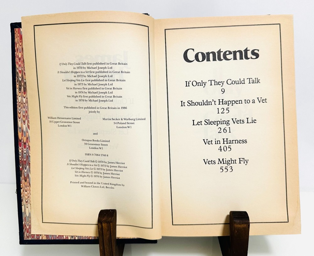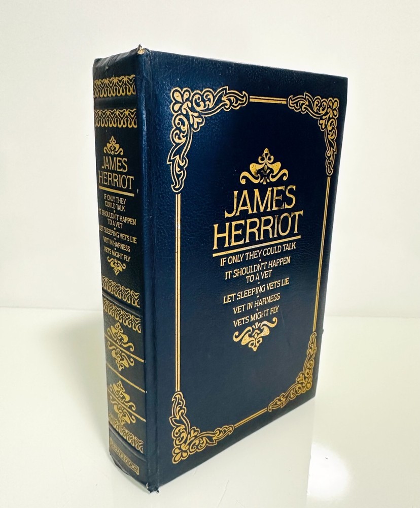 đ James Herriot Leather-Bound Collection (5 Classic Novels in 1 Volume) Experience the heartwarming and timeless stories of James Herriot , the beloved British veterinarian and author, in this beautifully leather-bound omnibus edition . This collectible edition features five of Herriot's most celebrated works , chronicling his life as a country vet in the Yorkshire Dales. đž Included Titles: If Only They Could Talk â The beginning of Herriotâs journey as a young vet in the Yorkshire countryside. It Shouldnât Happen to a Vet â Humorous and touching stories as Herriot navigates the challenges of veterinary practice. Let Sleeping Vets Lie â More charming tales about the colorful animals and eccentric characters Herriot encounters. Vet in Harness â Herriotâs growing career and personal life as he balances work and family. Vets Might Fly â A reflective look at Herriotâs service during World War II and his continued love for animals. ⨠Special Features: Deluxe Leather-Bound Cover â Elegant and durable, with gold gilt lettering and decorative designs. Gold-Gilded Page Edges â Adding a luxurious touch to this collectorâs edition. Marbled Endpapers â Classic and stylish, enhancing the aesthetic appeal. 5 Books in 1 Volume â Conveniently bringing together all of Herriotâs best-loved works.