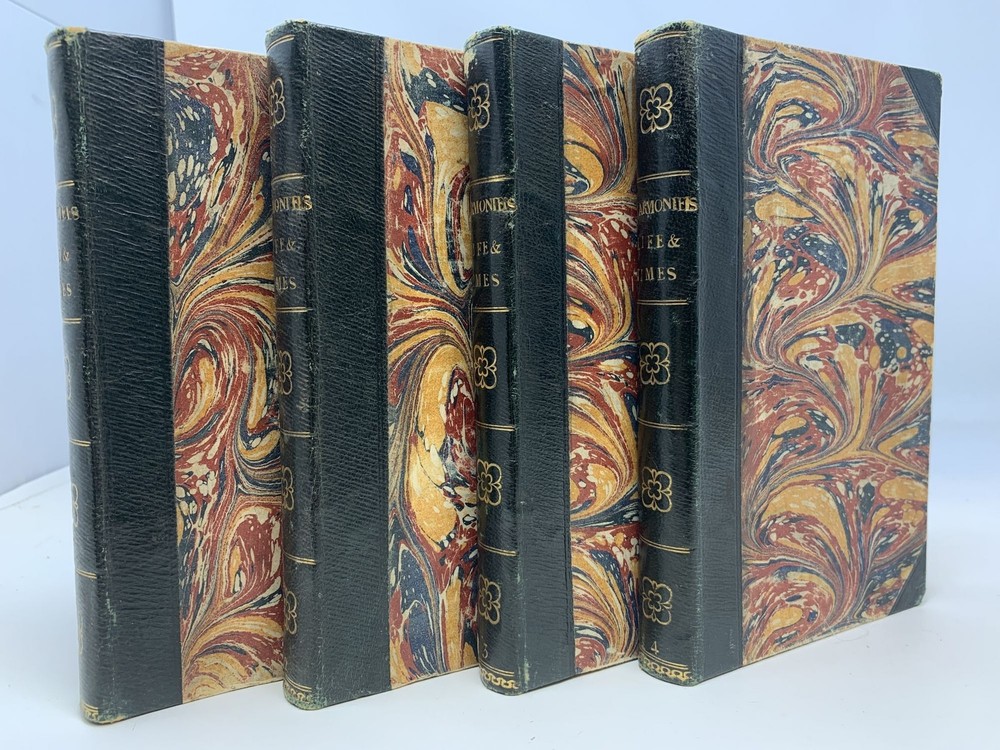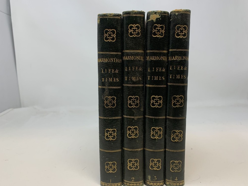 MEMOIRS OF MARMONTEL, WRITTEN BY HIMSELF : CONTAINING HIS LITERARY AND POLITICAL LIFE, AND ANECDOTES OF THE PRINCIPAL CHARACTERS OF THE EIGHTEENTH CENTURY. [COMPLETE FOUR VOLUME SET] Author: Marmontel, Jean-Francois Title: MEMOIRS OF MARMONTEL, WRITTEN BY HIMSELF : CONTAINING HIS LITERARY AND POLITICAL LIFE, AND ANECDOTES OF THE PRINCIPAL CHARACTERS OF THE EIGHTEENTH CENTURY. [COMPLETE FOUR VOLUME SET] Publication: London: Longman, Hurst, Rees and John Muray, 1805 Edition: First Edition Description: Leather_bound. 406, 346, 356, 344 total pages. [Lacks adverts at end of each volume which were excised when set was rebound]. Professionally bound in 3/4 green leather with marbled boards. Spine titles and decorations in gilt. Small octavos. Condition: Rear board to volume one has some fading, spines bright, corners bumped and some light edgewear. Bindings tight. Bookplate to each volume, occasional foxing to interiors, overall bright. Very Good. Marmontel [1723-1799] gained literary success in Paris with his Moral Stories [Contes Moraux] ,regarded as classics today. He wrote "Les Incas" , a call for religious toleration, which led to his being denounced by the Sorbonne. He was also friends with Diderot and the Encyclopedists. Seller ID: 76740 Aardvark Rare Books Eugene, OR We work hard to make your Bookbuying Experience safe, easy and fun. Aardvark Books is a proud member of the ABAA (Antiquarian Booksellers Association of America) and IOBA, Independent Online Booksellers Association. Ezra is also an accredited and Qualified Appraiser of Books and Manuscripts, with a designation from the ASA (American Society of Appraisers), with considerable Archive experience as well. Shipping All books shipped to US destinations are sent via the US Postal Service. Faster shipping is available, please ask before paying. We will combine shipping on items purchased at the same time in order to help reduce costs. International shipping is also available. Please inquire for a shipping quote before ordering. This listing was created by Bibliopolis.