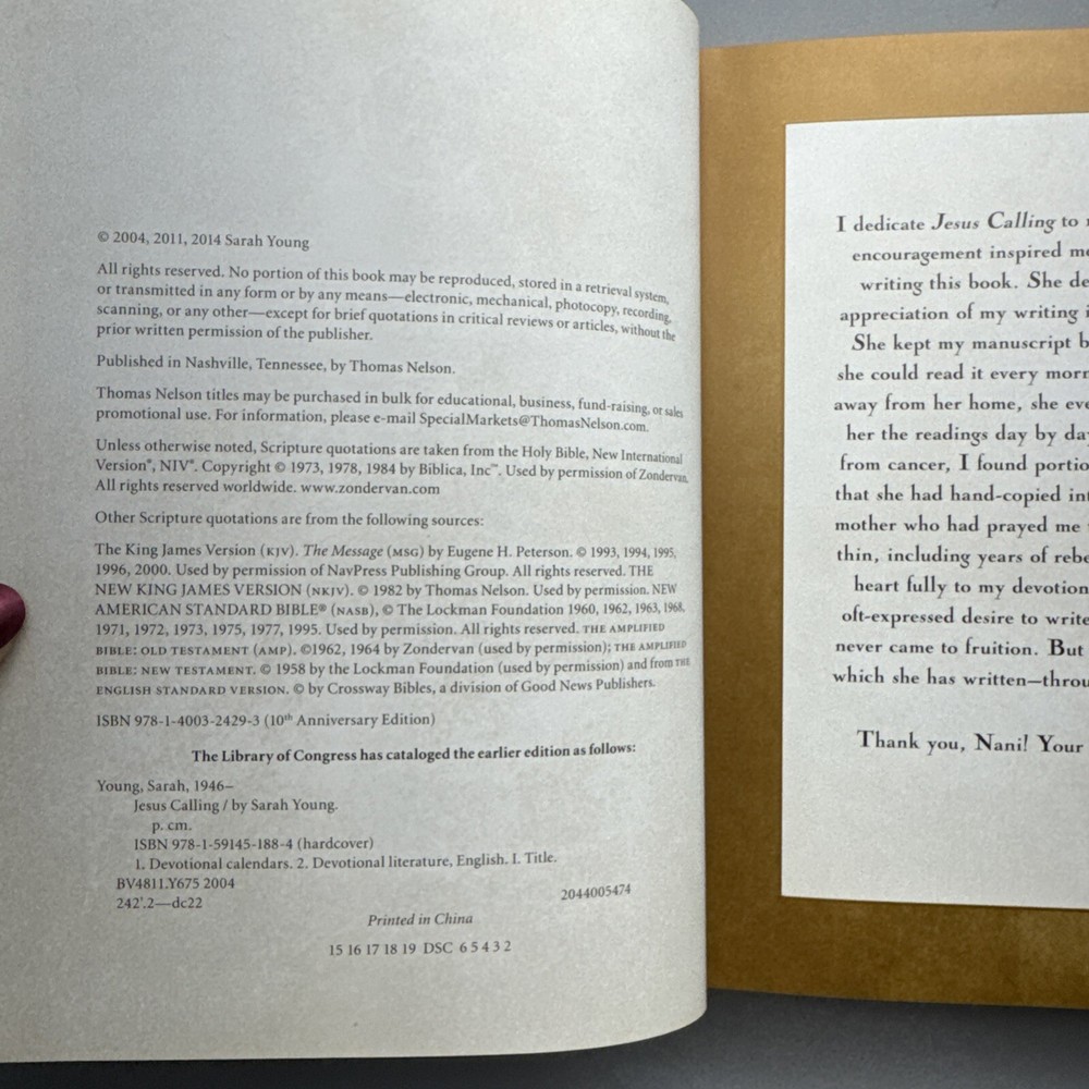 | Book Title | Jesus Calling-10th Anniversary Expanded Edition : Enjoying Peace in His Presence |