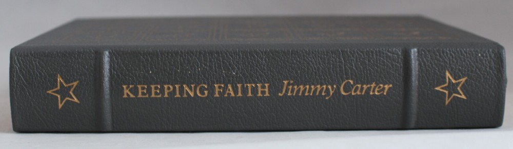 This stunning Easton Press edition of *Keeping Faith* is a treasure for collectors and history enthusiasts alike. The genuine Jimmy Carter autograph adds incredible value, while the luxurious leather binding, gold-edged pages, and elegant craftsmanship make it a standout piece. The book offers a fascinating glimpse into Carter’s presidency and personal journey, beautifully preserved in this high-quality edition. A true masterpiece for any library!